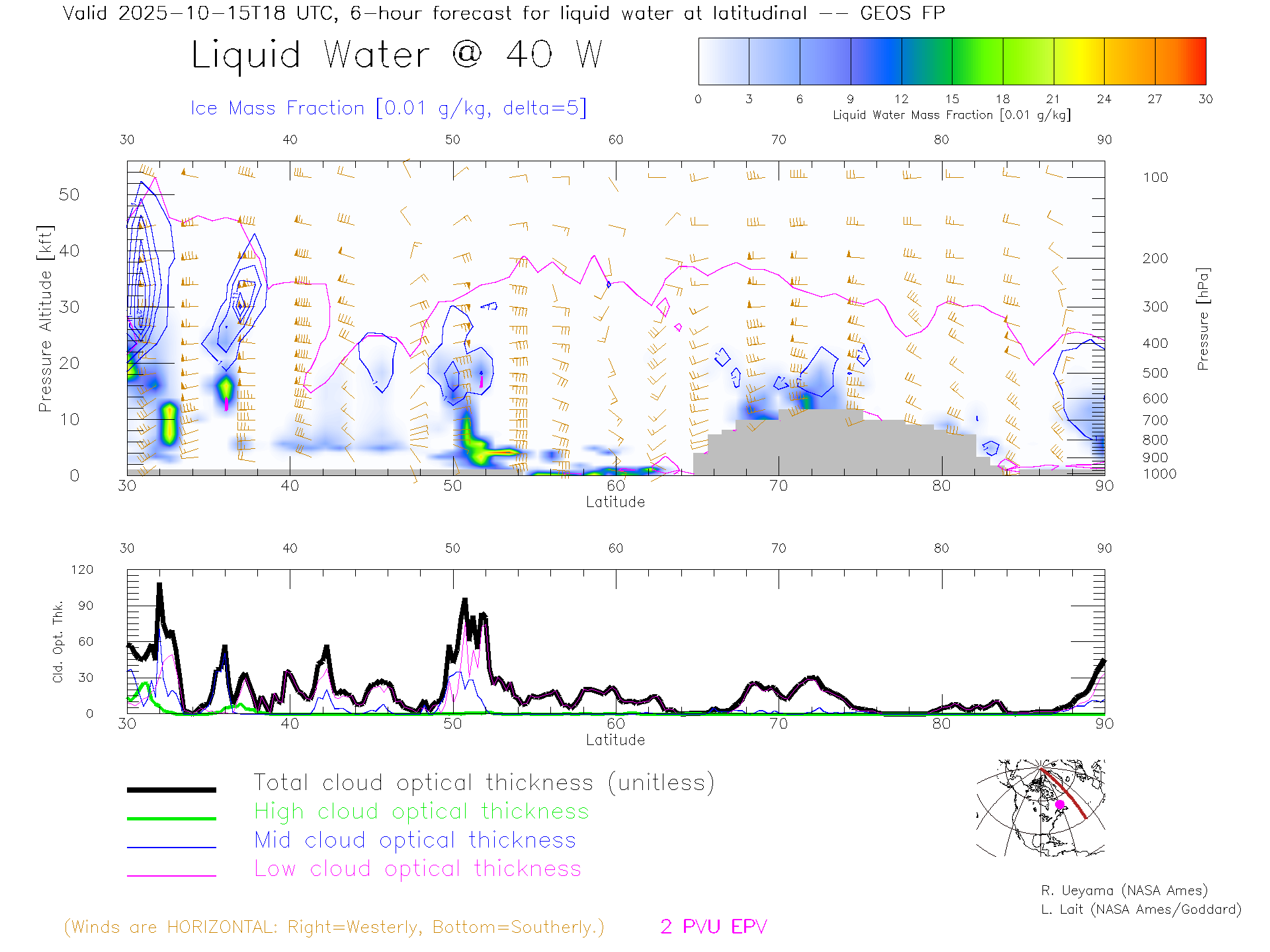 GEOS Forecast Cloud Water Content X-Section (40 W)