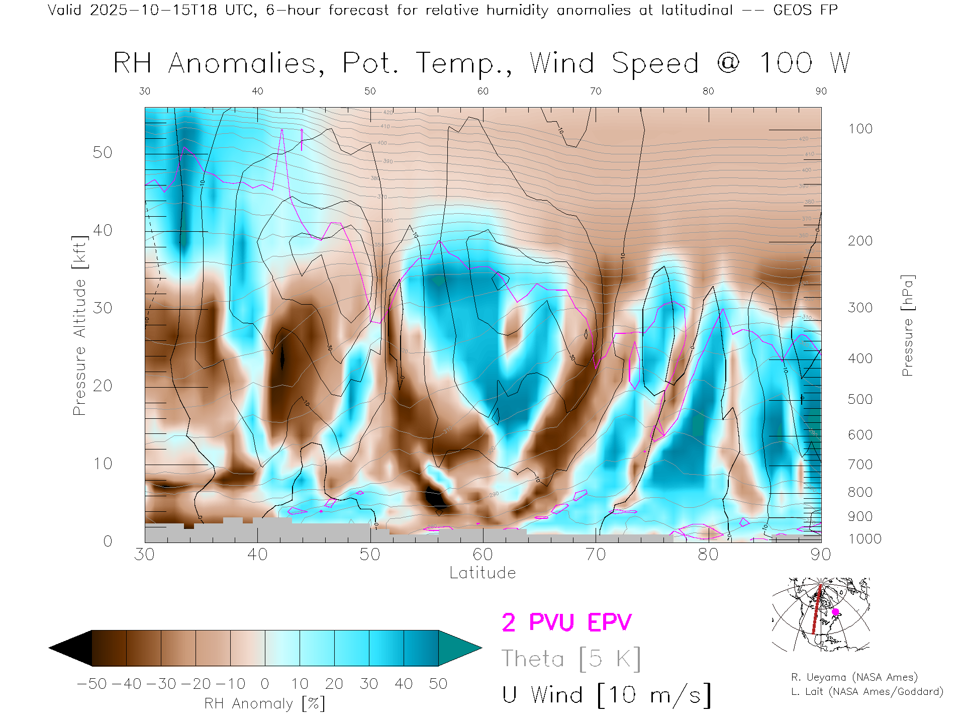GEOS Forecast Rel. Hum. X-Section (100 W)