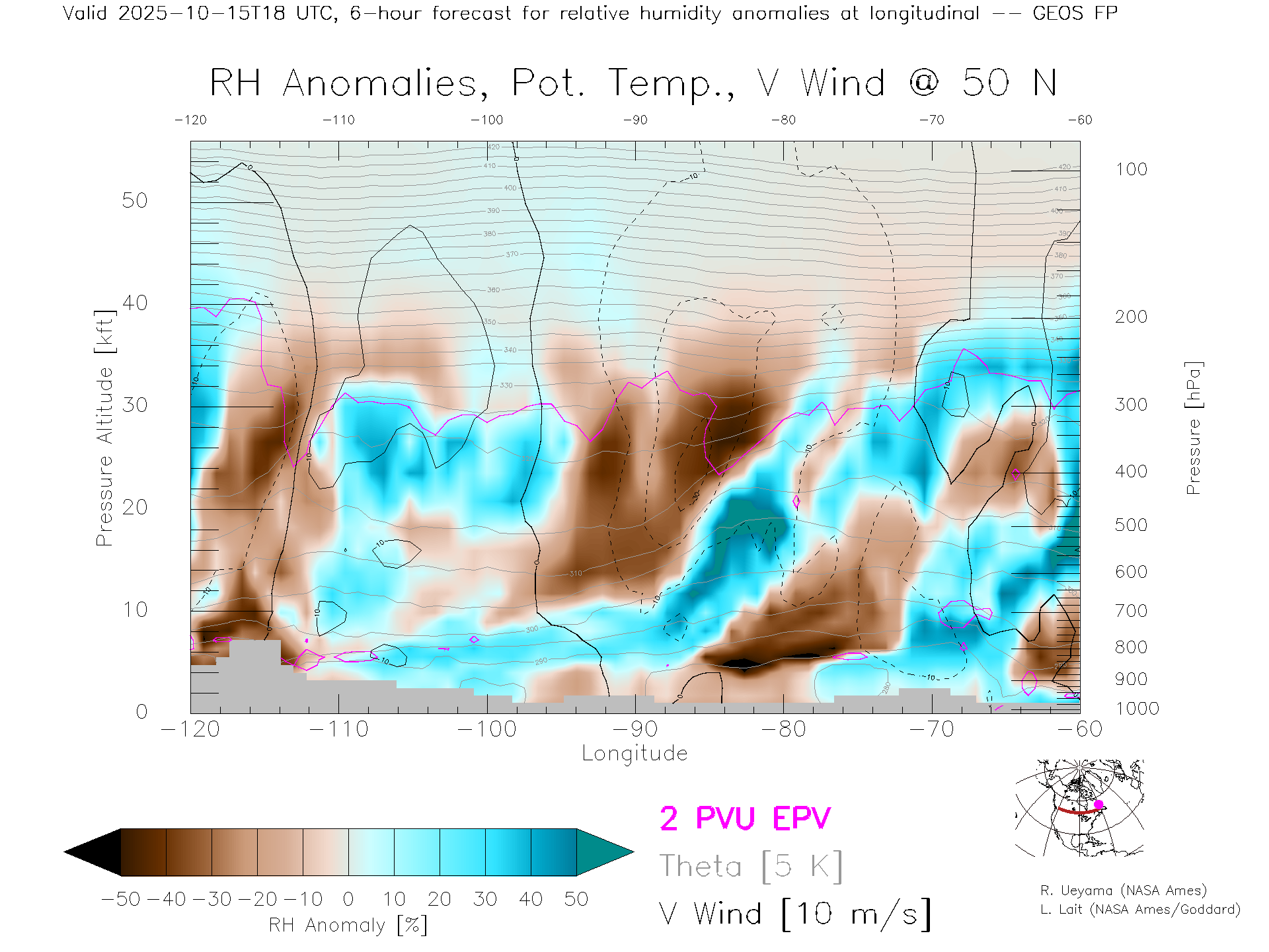 GEOS Forecast Rel. Hum. X-Section (50 N)