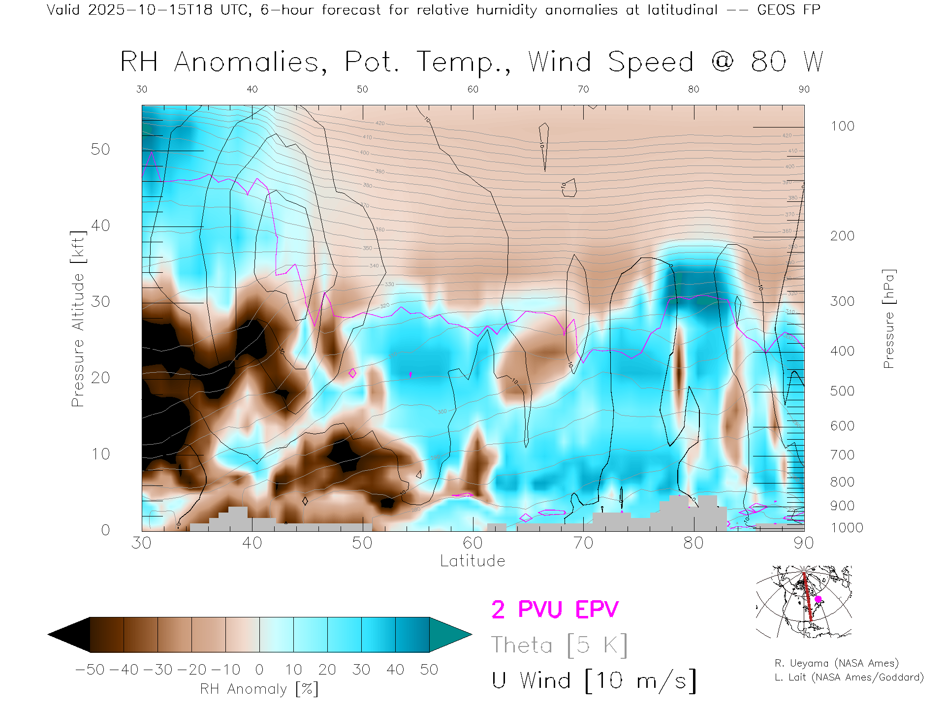 GEOS Forecast Rel. Hum. X-Section (80 W)
