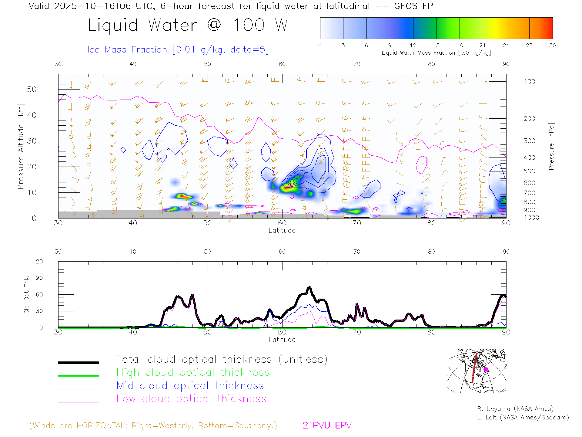 GEOS Forecast Cloud Water Content X-Section (100 W)