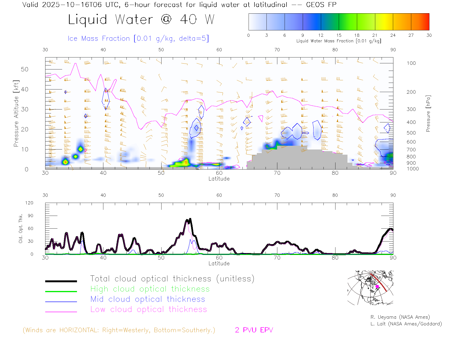 GEOS Forecast Cloud Water Content X-Section (40 W)