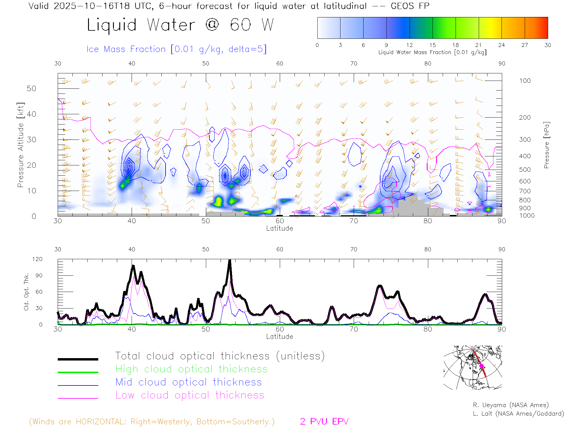 GEOS Forecast Cloud Water Content X-Section (60 W)