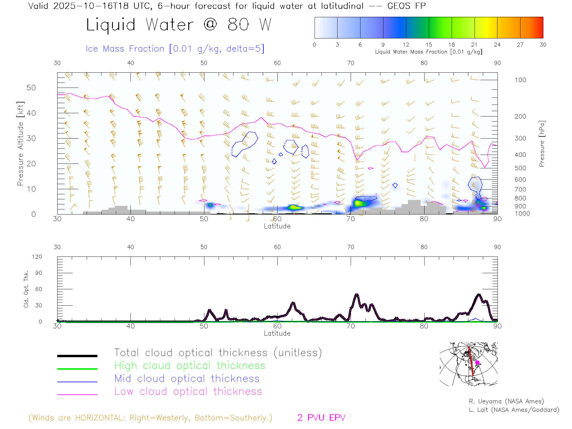 GEOS Forecast Cloud Water Content X-Section (80 W)