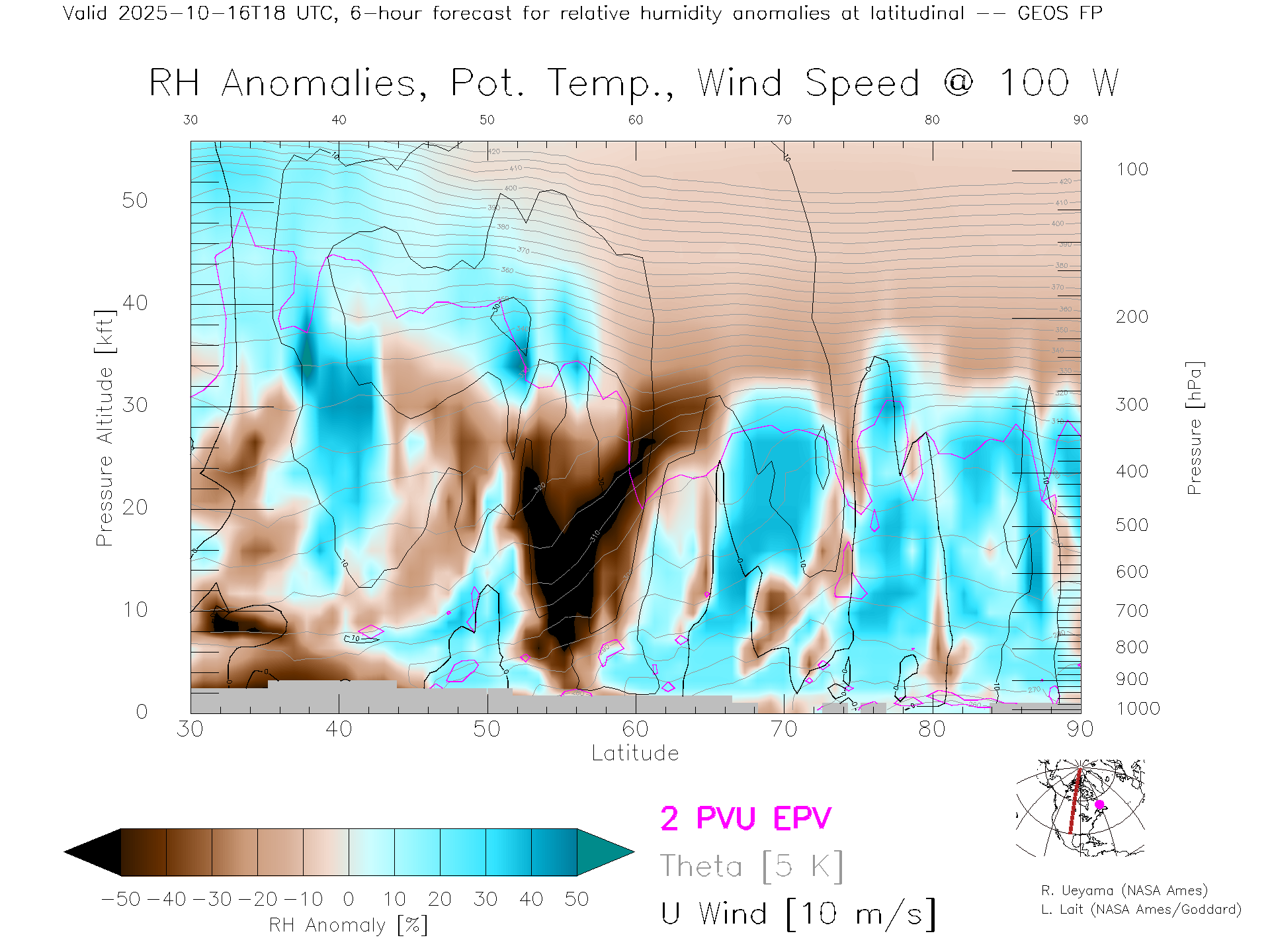 GEOS Forecast Rel. Hum. X-Section (100 W)