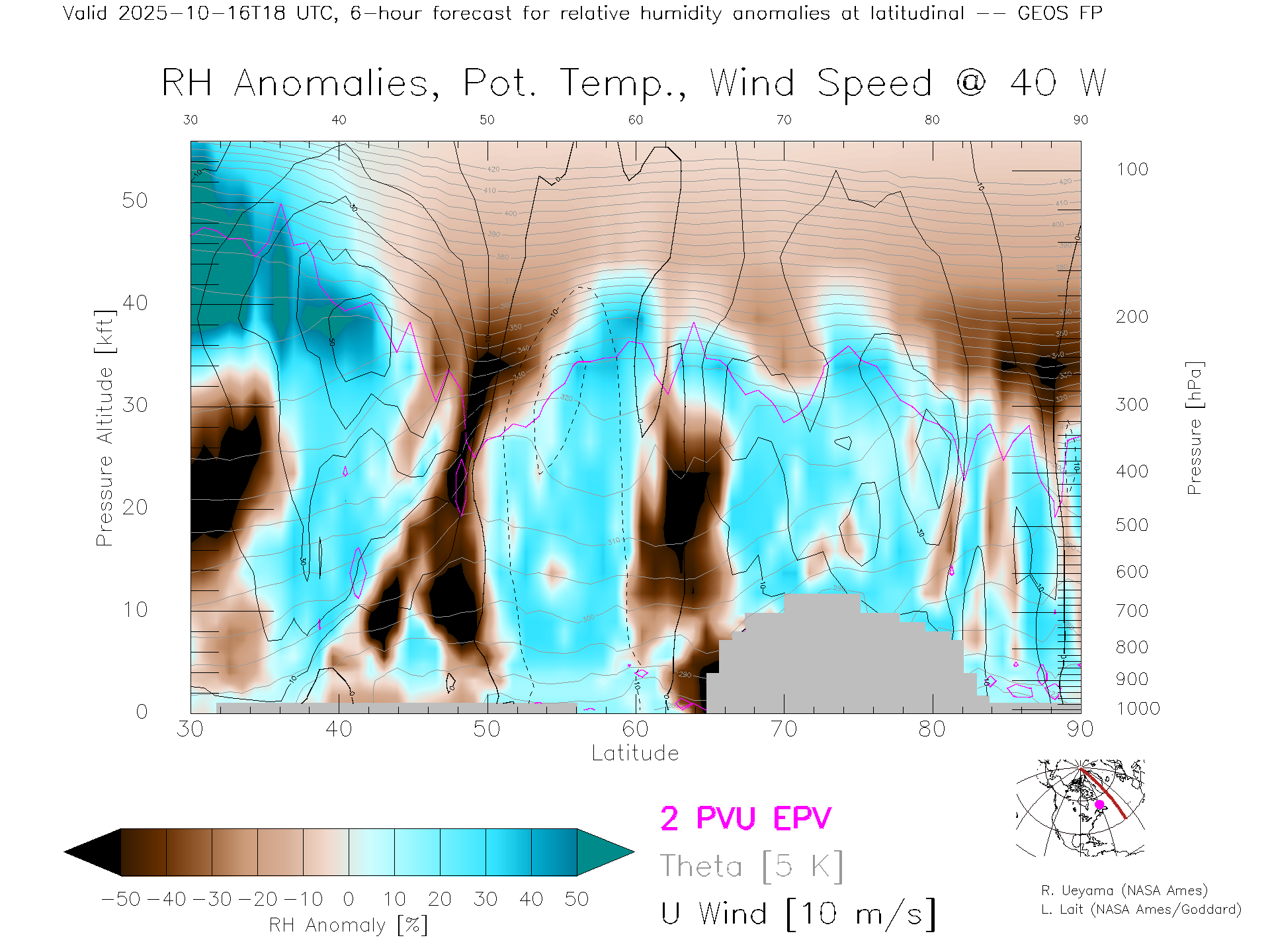 GEOS Forecast Rel. Hum. X-Section (40 W)