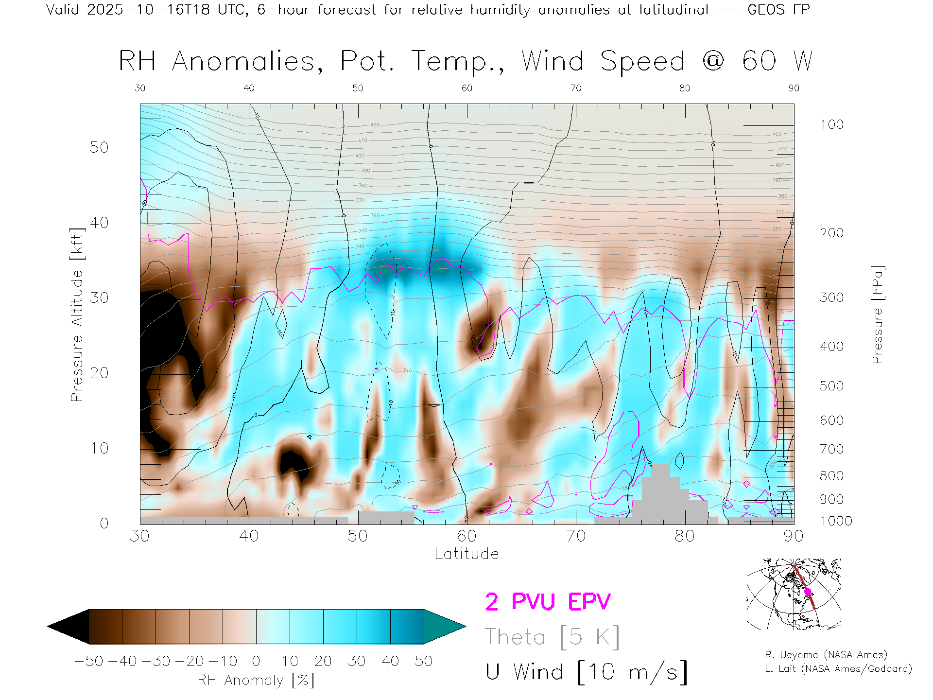 GEOS Forecast Rel. Hum. X-Section (60 W)