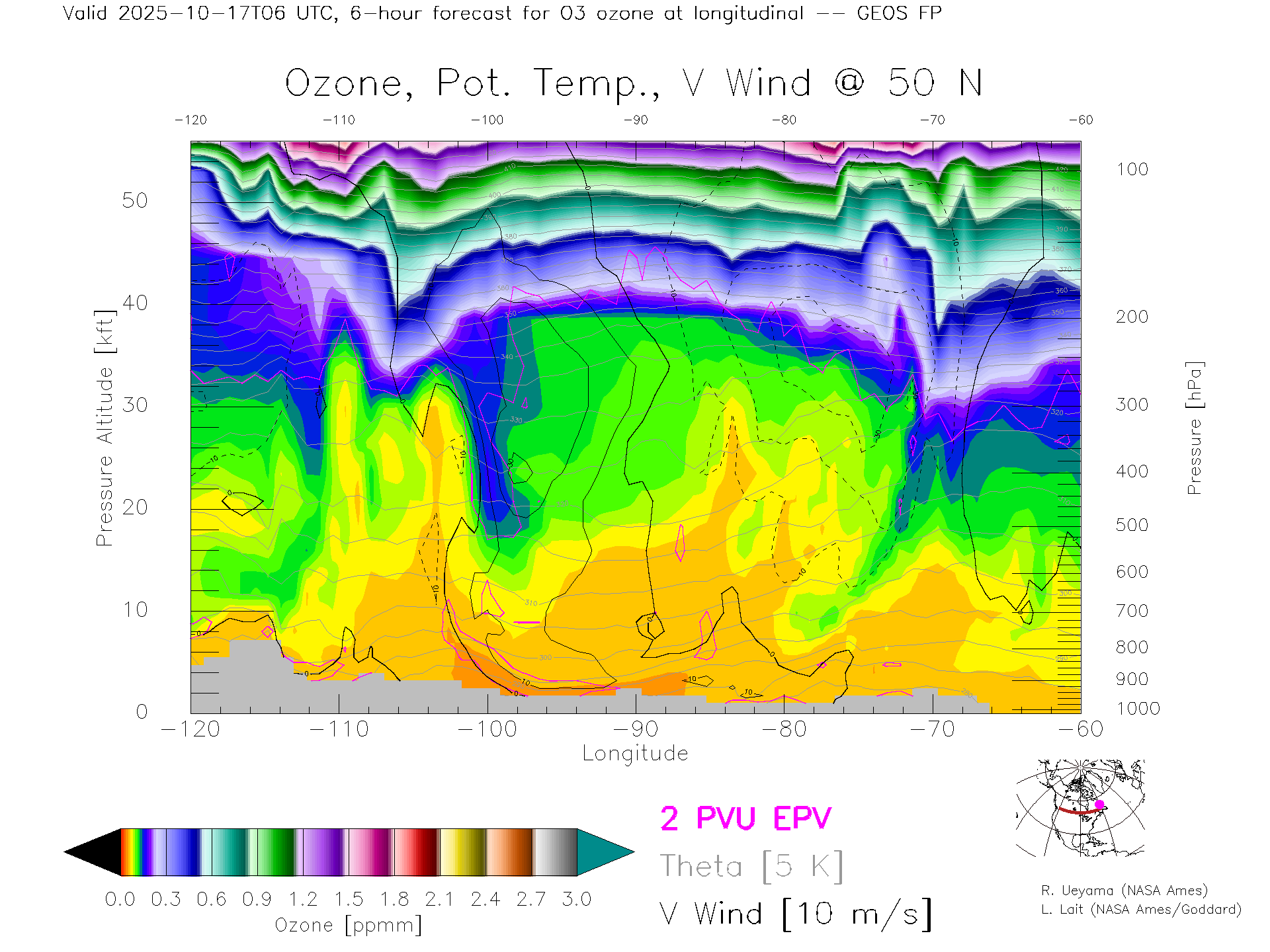 GEOS Forecast Ozone X-Section (50 N)