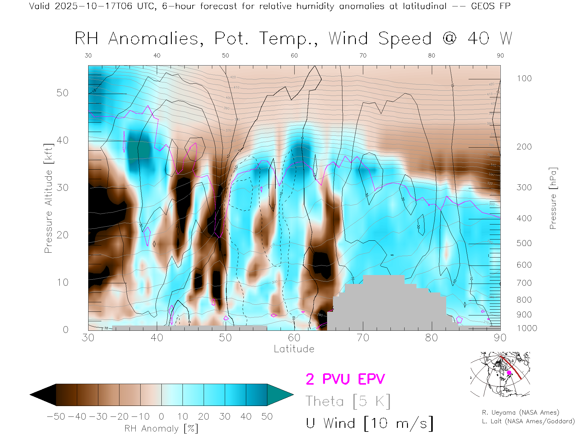 GEOS Forecast Rel. Hum. X-Section (40 W)