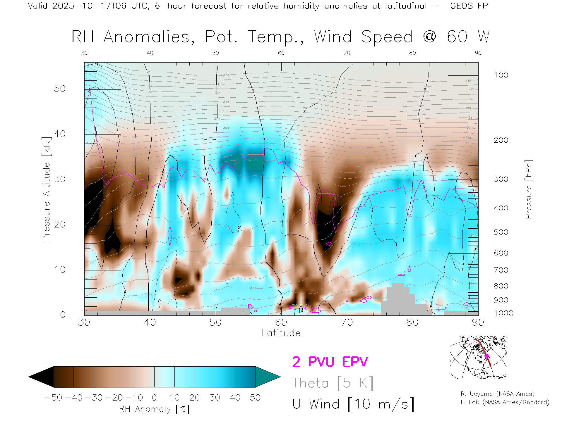 GEOS Forecast Rel. Hum. X-Section (60 W)