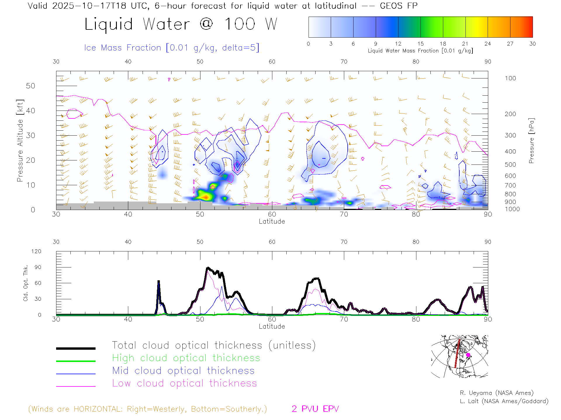 GEOS Forecast Cloud Water Content X-Section (100 W)