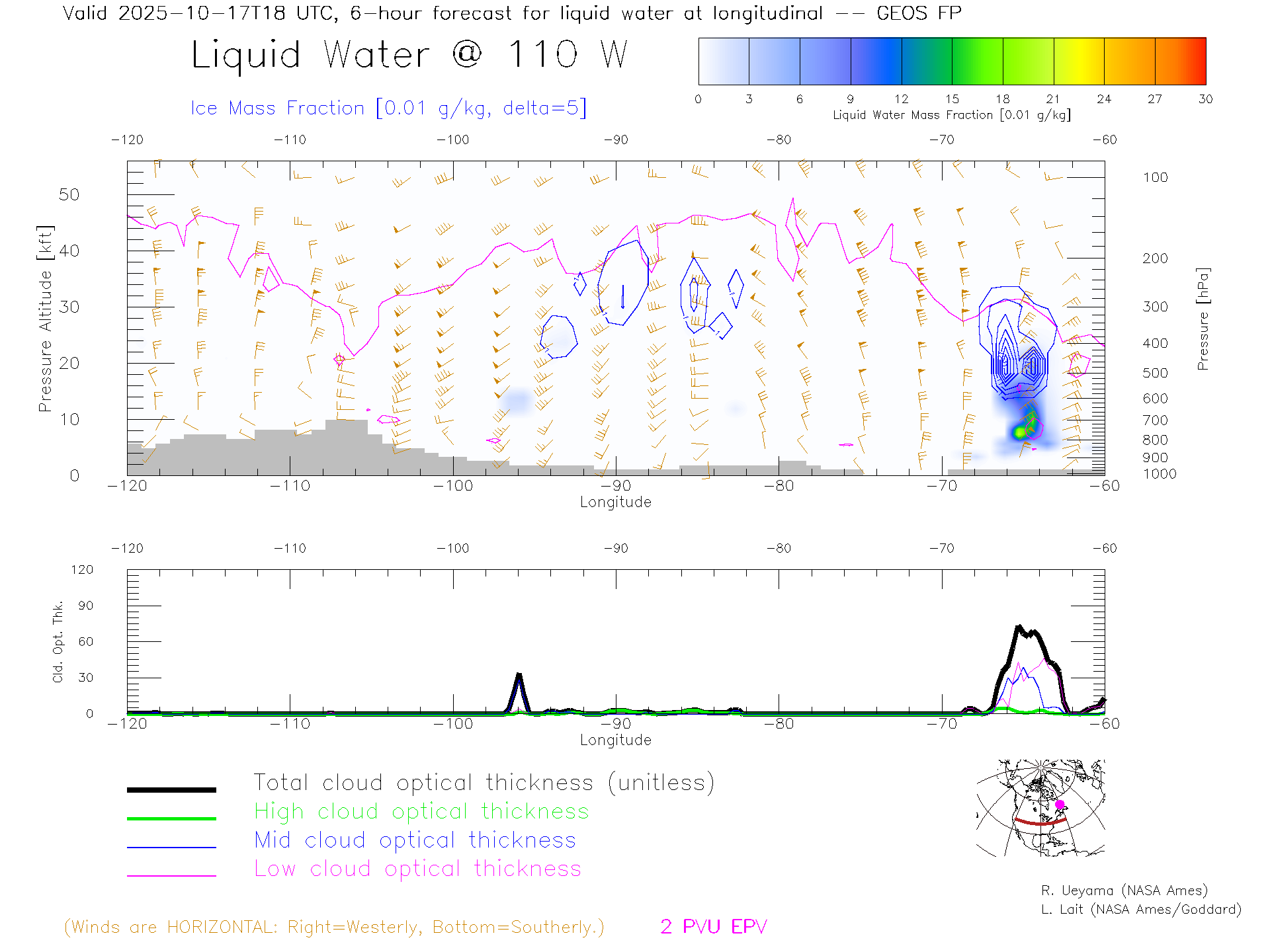 GEOS Forecast Cloud Water Content X-Section (40 N)