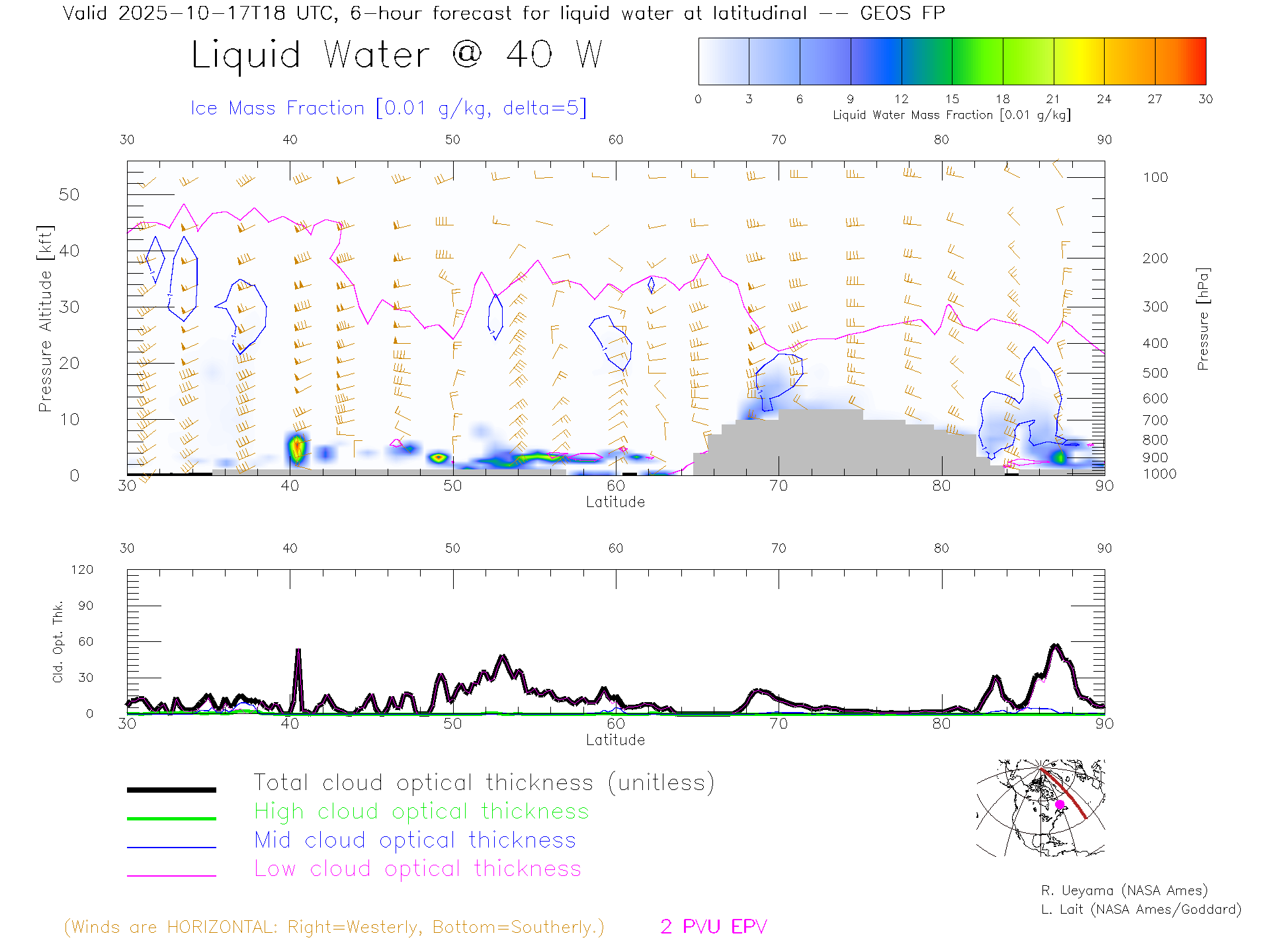 GEOS Forecast Cloud Water Content X-Section (40 W)