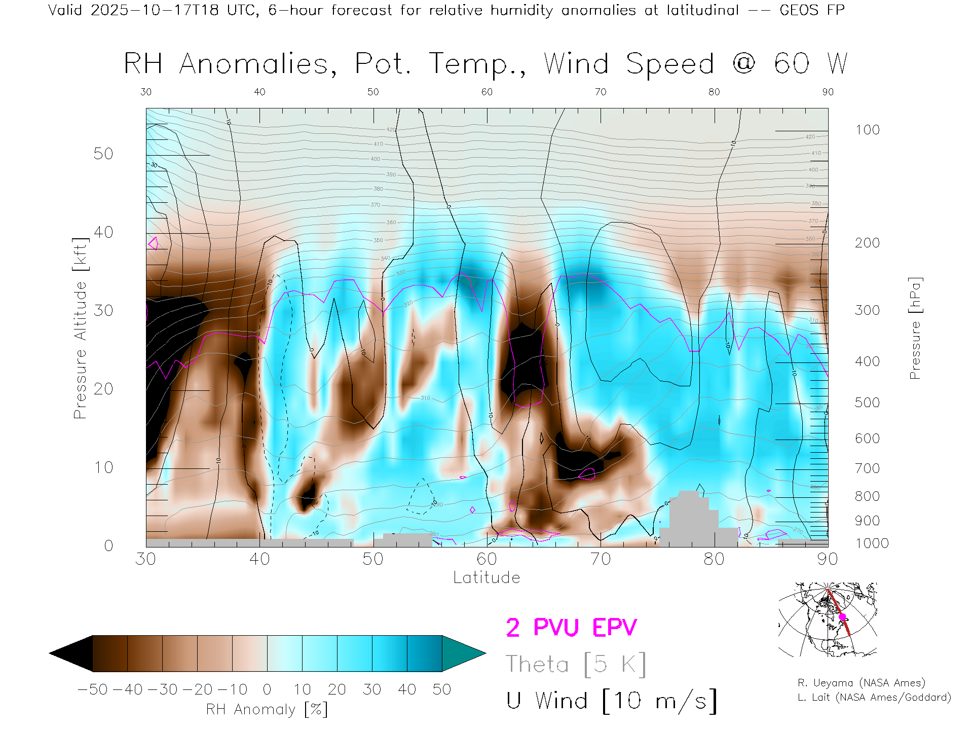 GEOS Forecast Rel. Hum. X-Section (60 W)