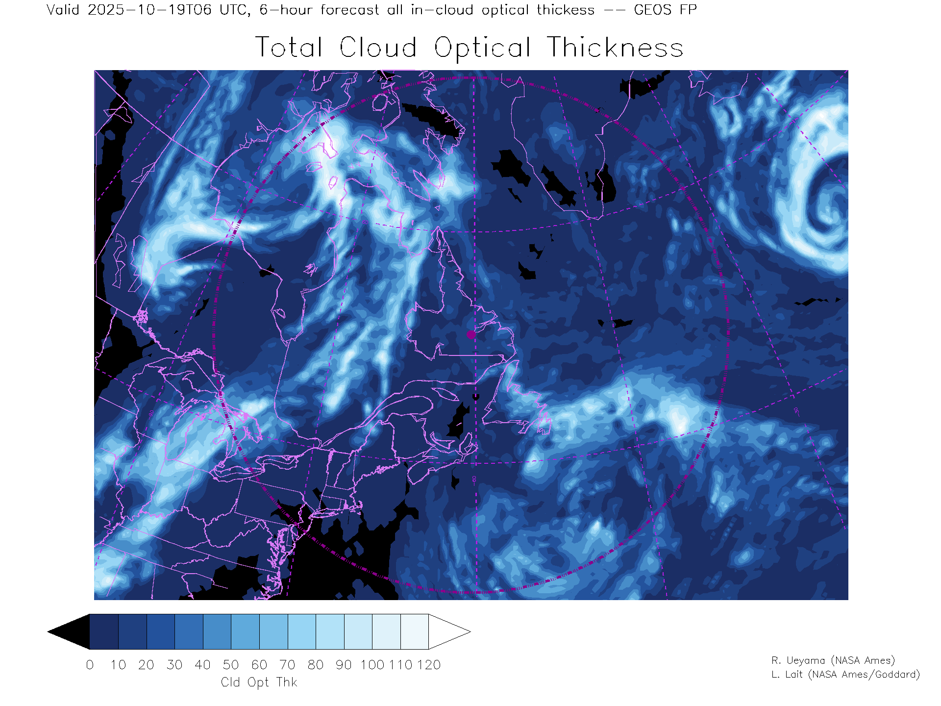 GEOS Forecast Total Cloud Optical thickness