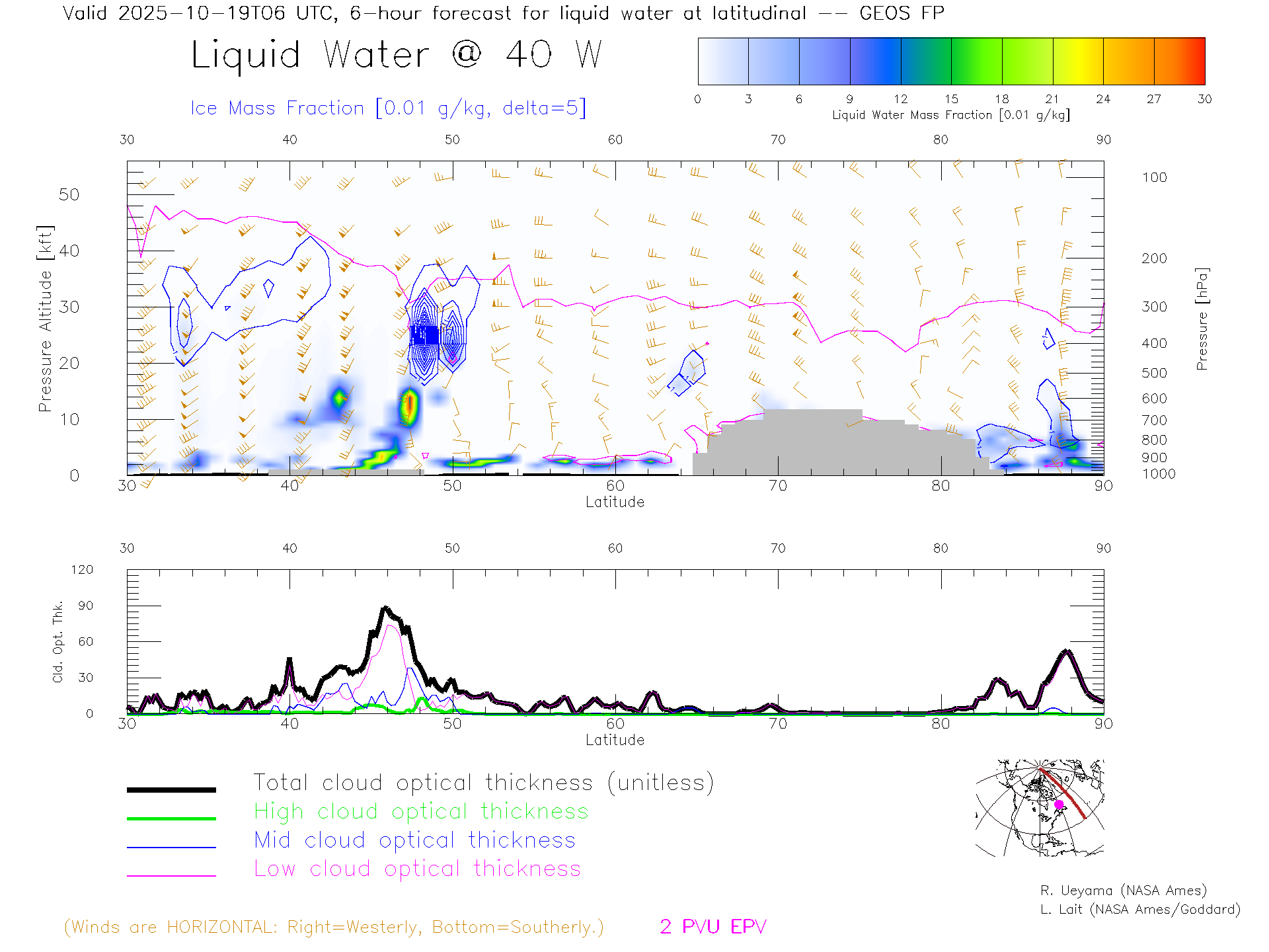 GEOS Forecast Cloud Water Content X-Section (40 W)