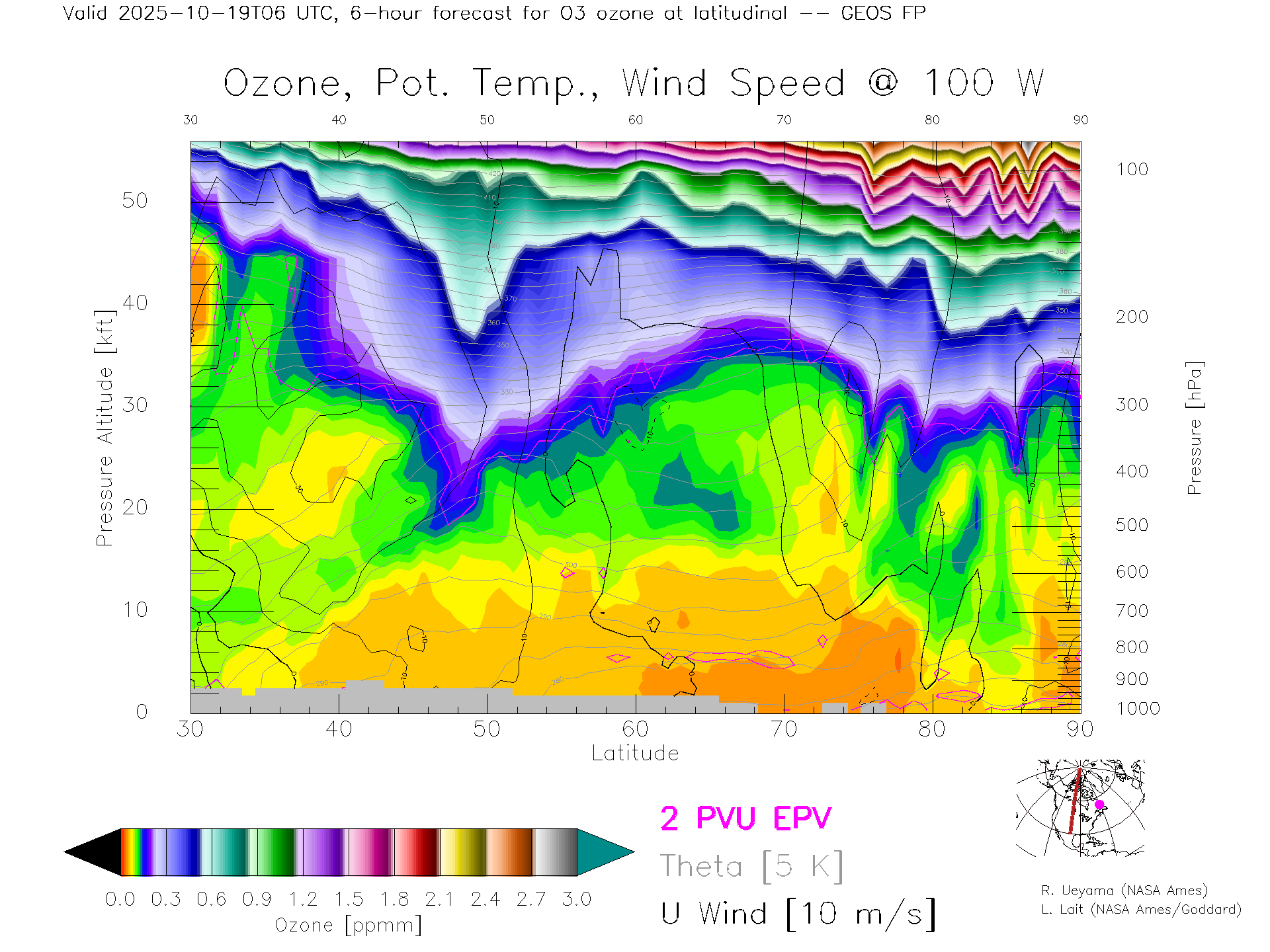 GEOS Forecast Ozone X-Section (100 W)