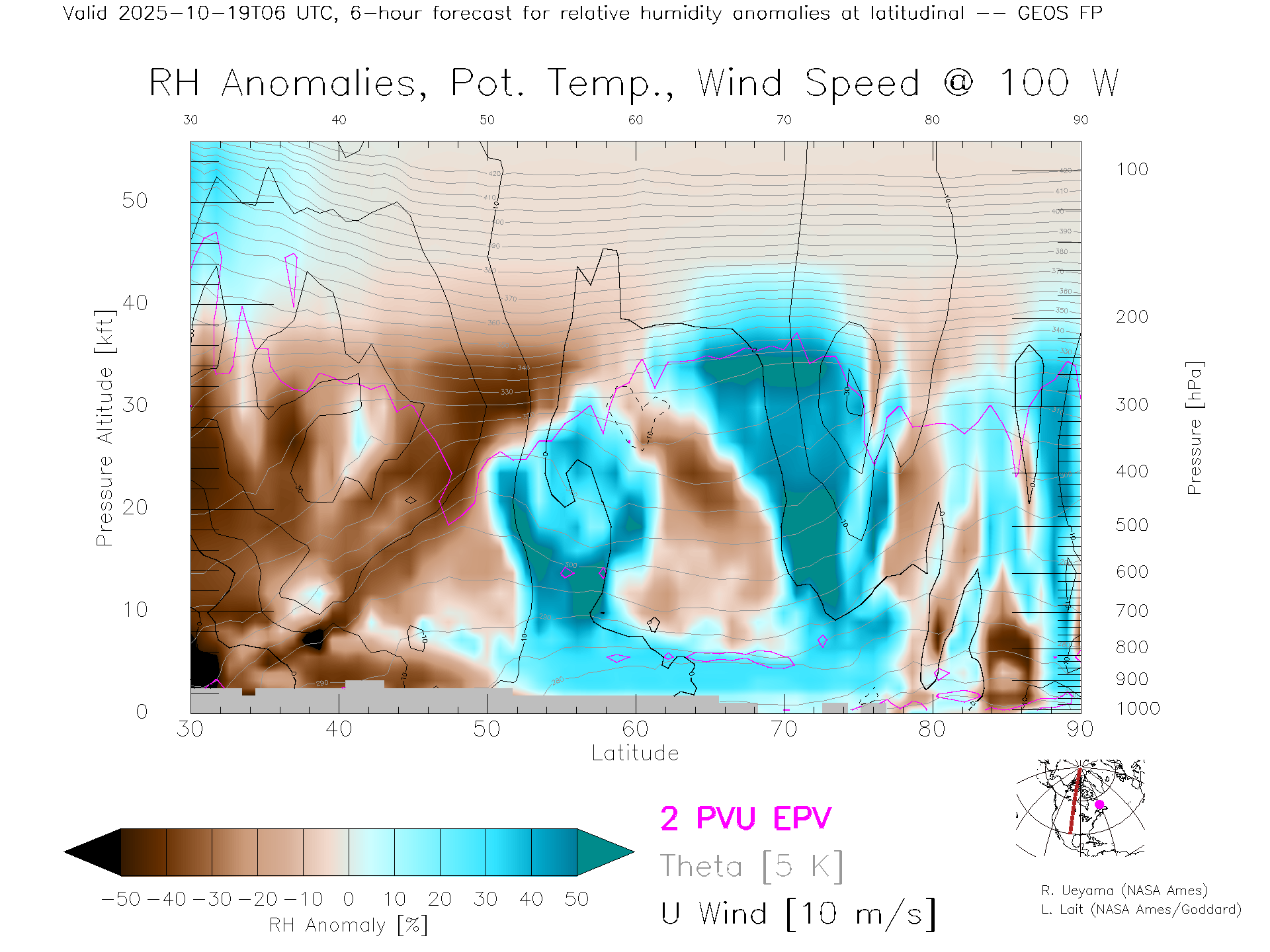 GEOS Forecast Rel. Hum. X-Section (100 W)