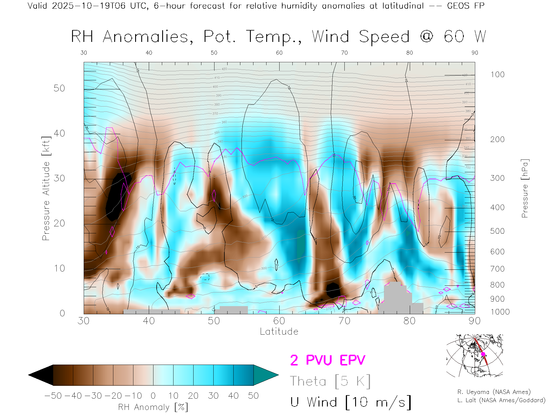 GEOS Forecast Rel. Hum. X-Section (60 W)
