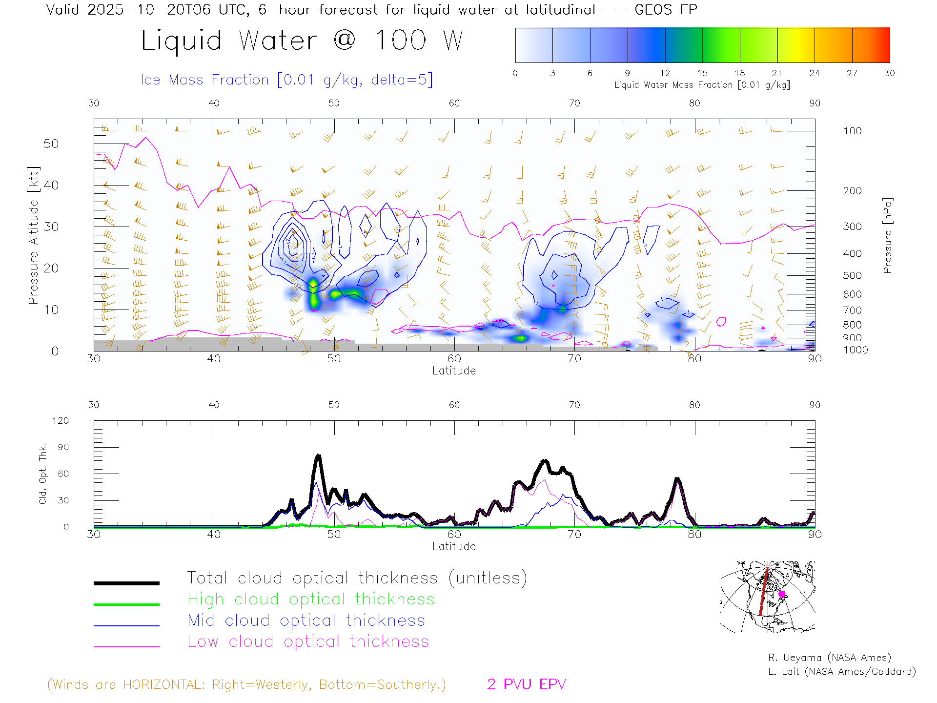 GEOS Forecast Cloud Water Content X-Section (100 W)
