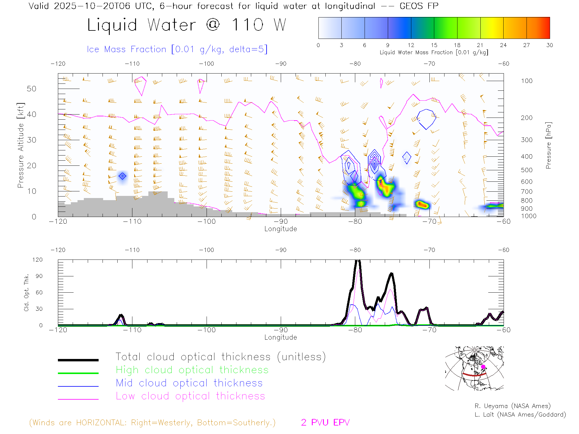 GEOS Forecast Cloud Water Content X-Section (40 N)