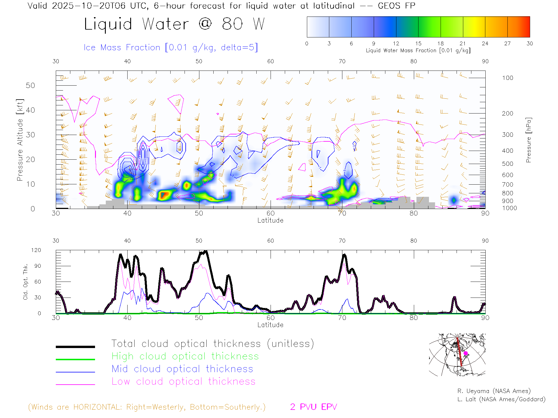 GEOS Forecast Cloud Water Content X-Section (80 W)