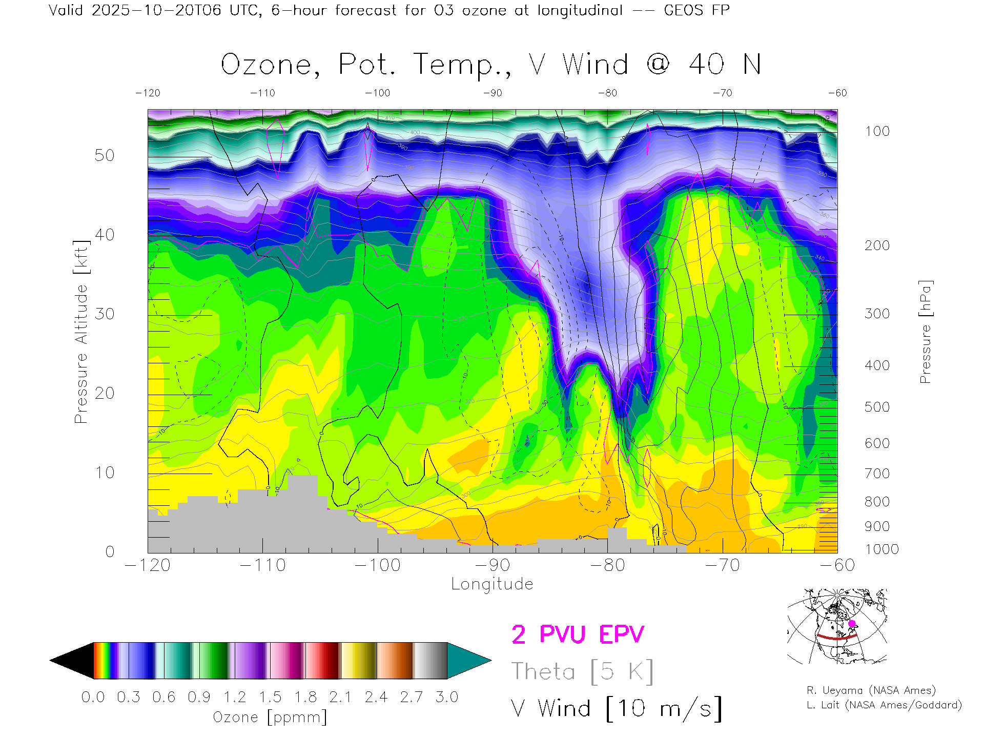 GEOS Forecast Ozone X-Section (40 N)