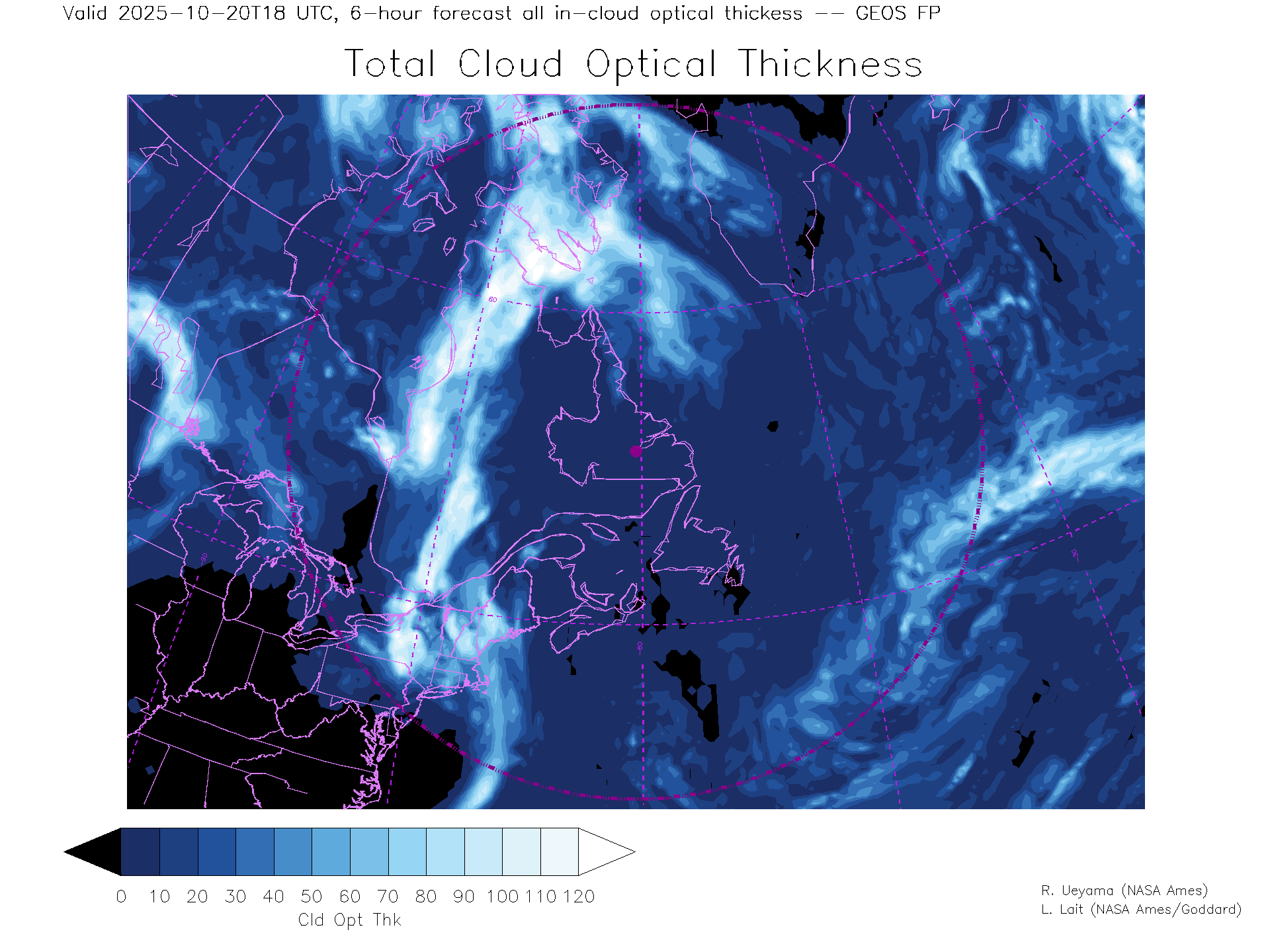 GEOS Forecast Total Cloud Optical thickness