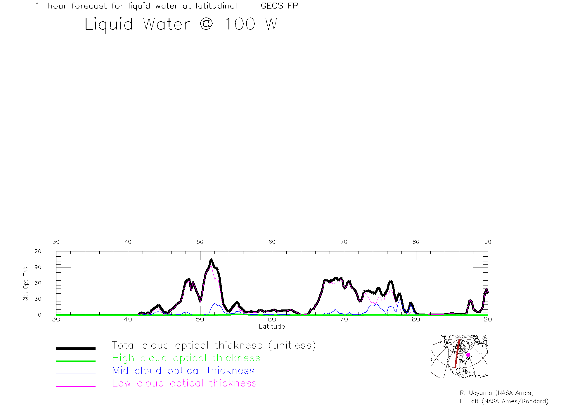 GEOS Forecast Cloud Water Content X-Section (100 W)