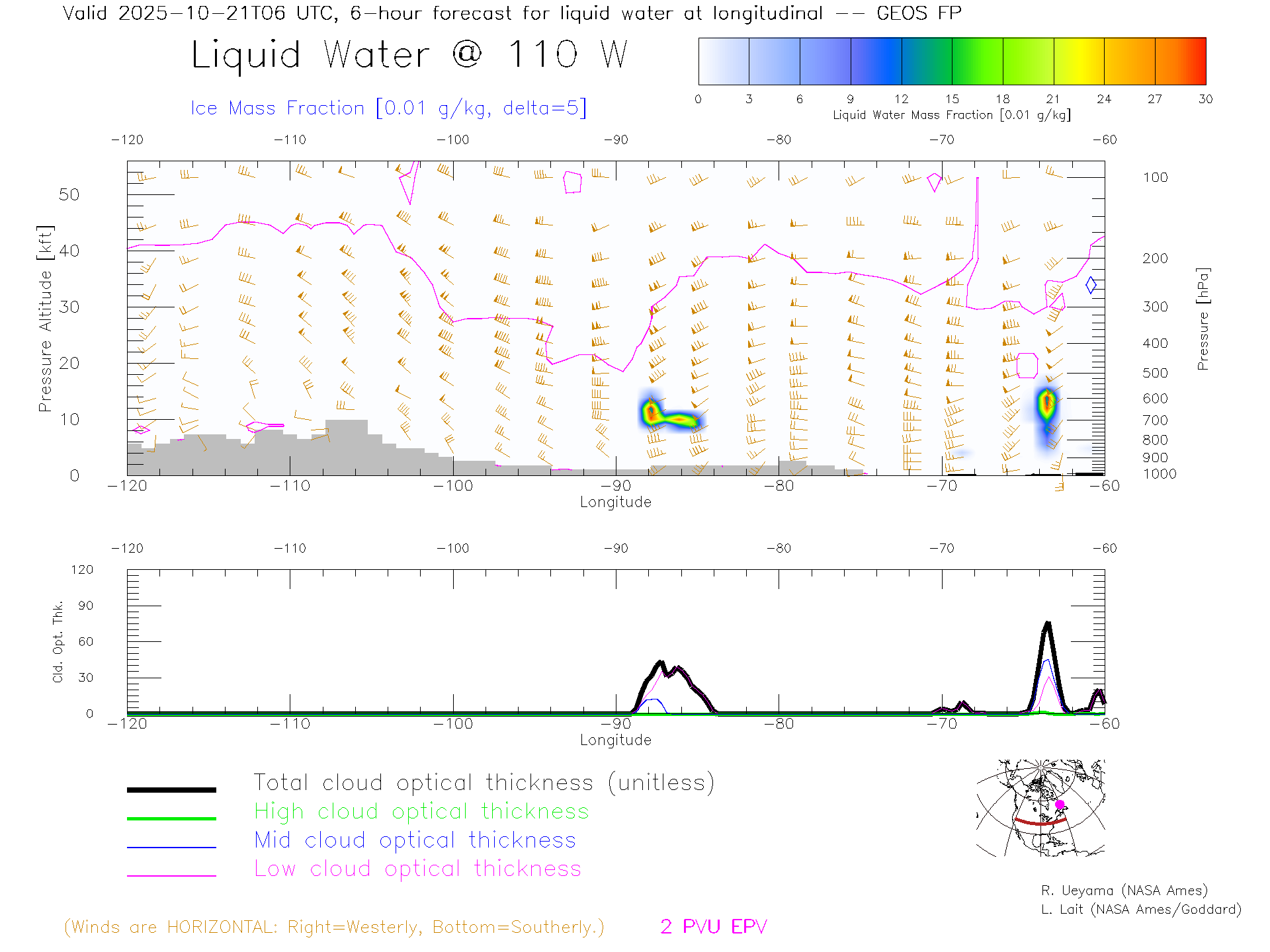 GEOS Forecast Cloud Water Content X-Section (40 N)