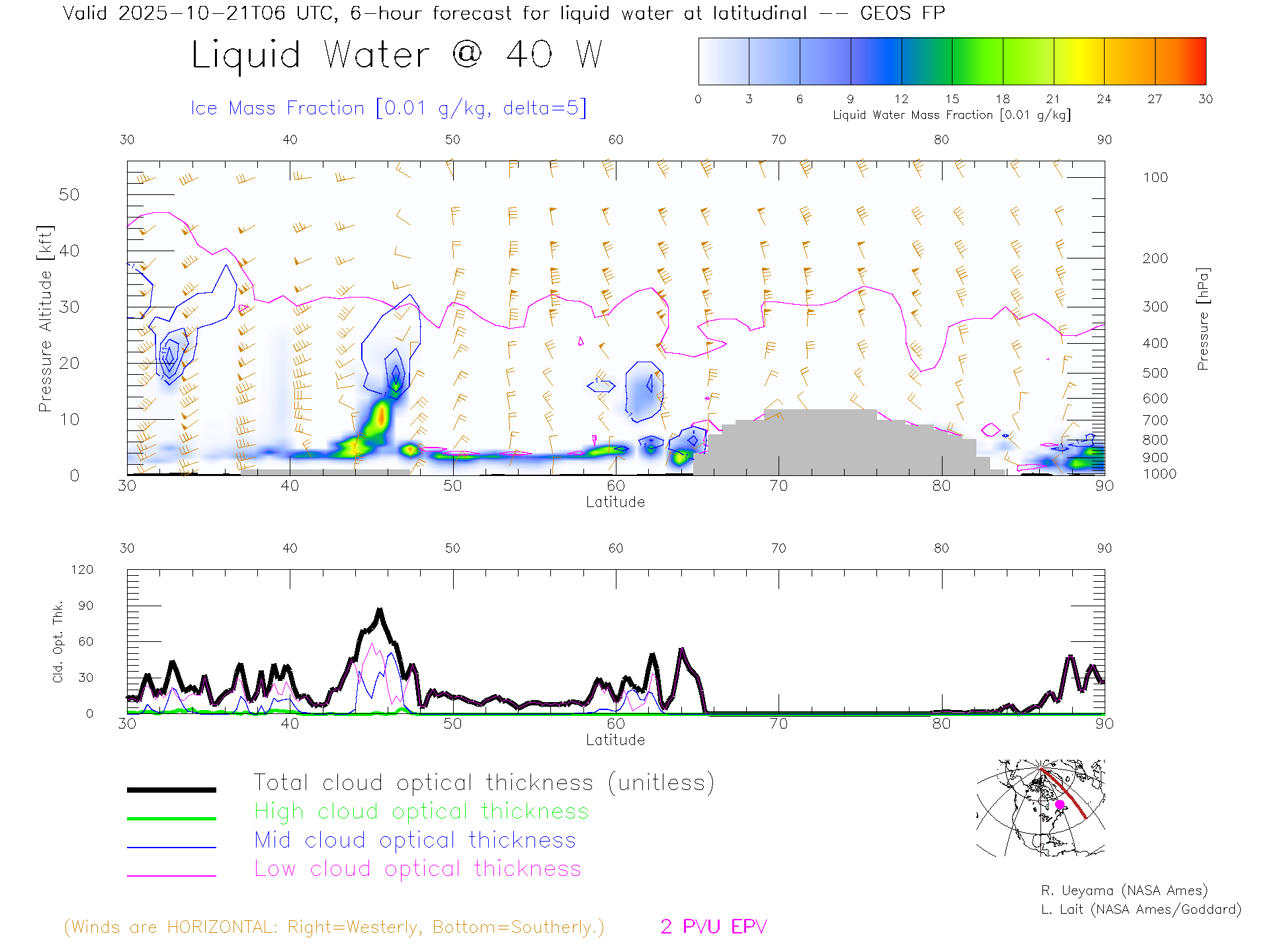 GEOS Forecast Cloud Water Content X-Section (40 W)