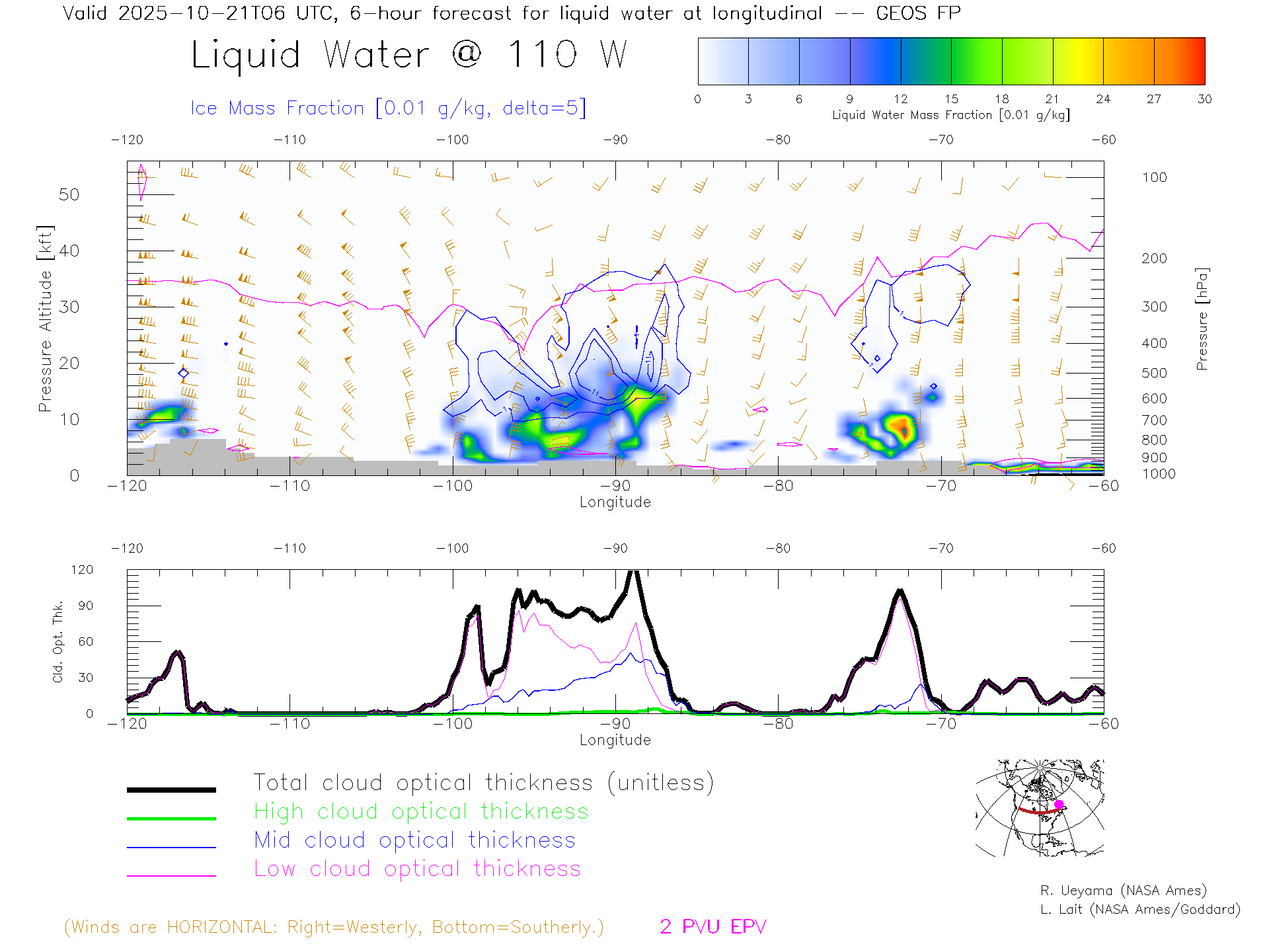 GEOS Forecast Cloud Water Content X-Section (50 N)