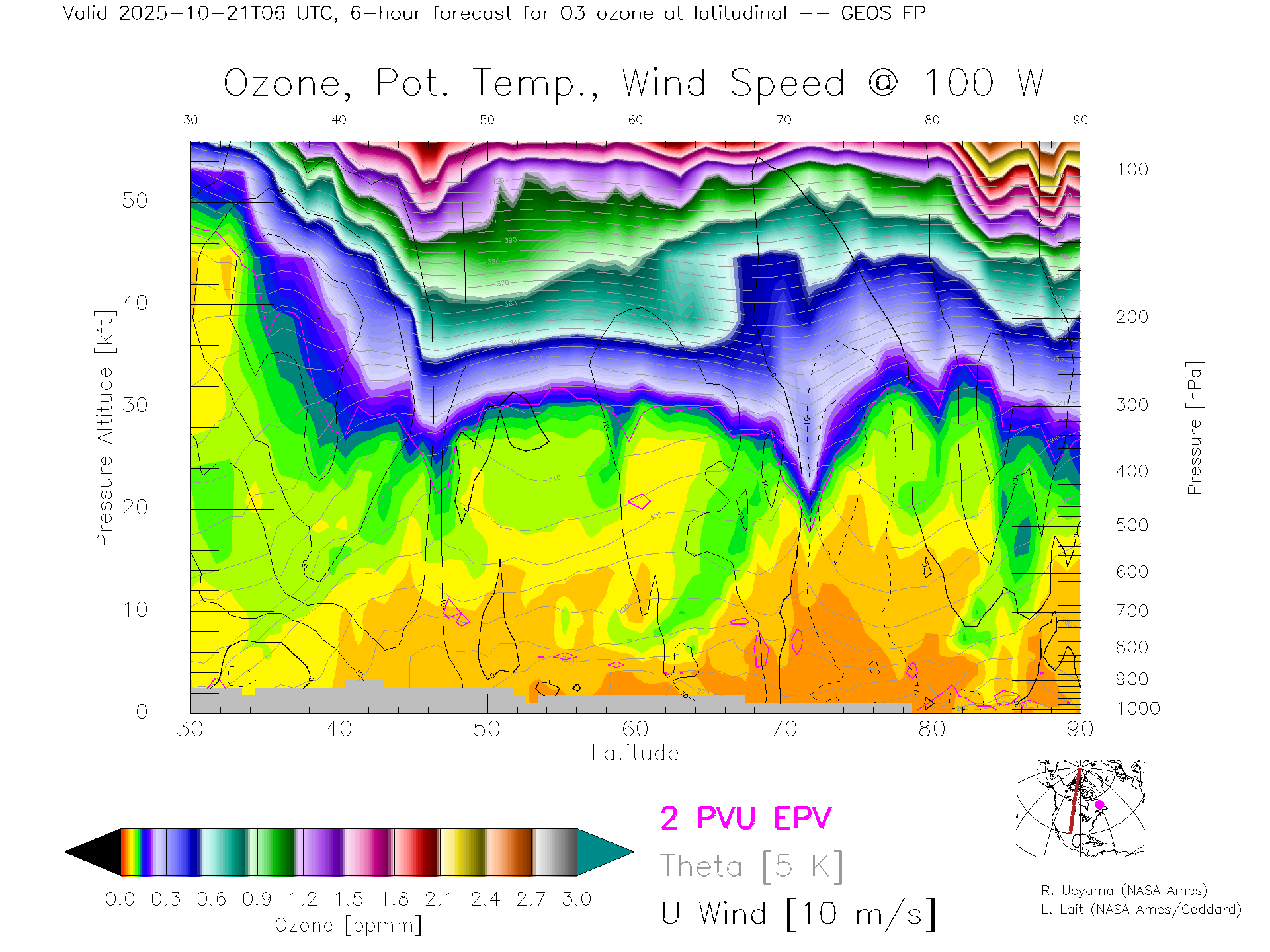 GEOS Forecast Ozone X-Section (100 W)