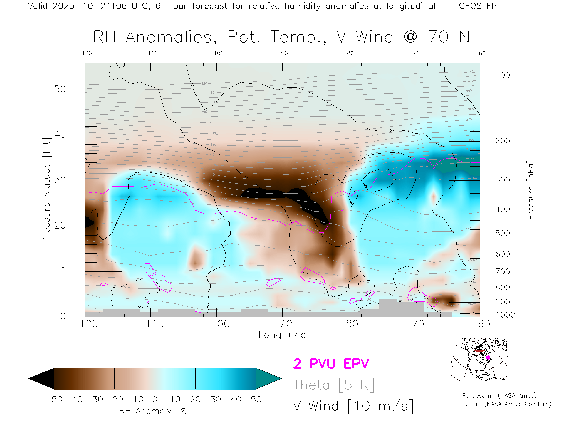 GEOS Forecast Rel. Hum. X-Section (70 N)