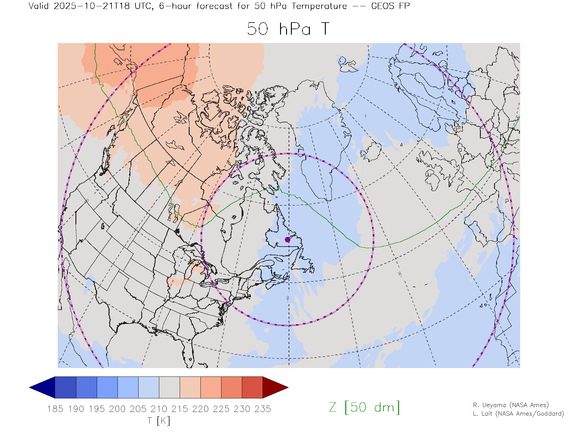 GEOS Forecast 50 hPa Temp.
