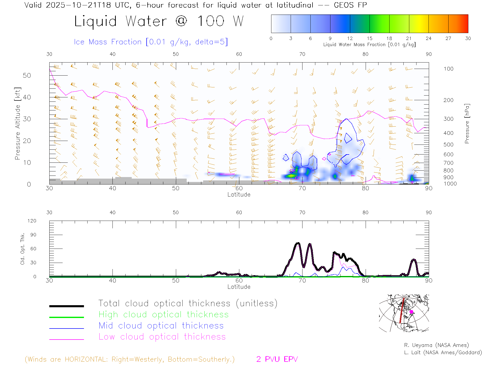 GEOS Forecast Cloud Water Content X-Section (100 W)