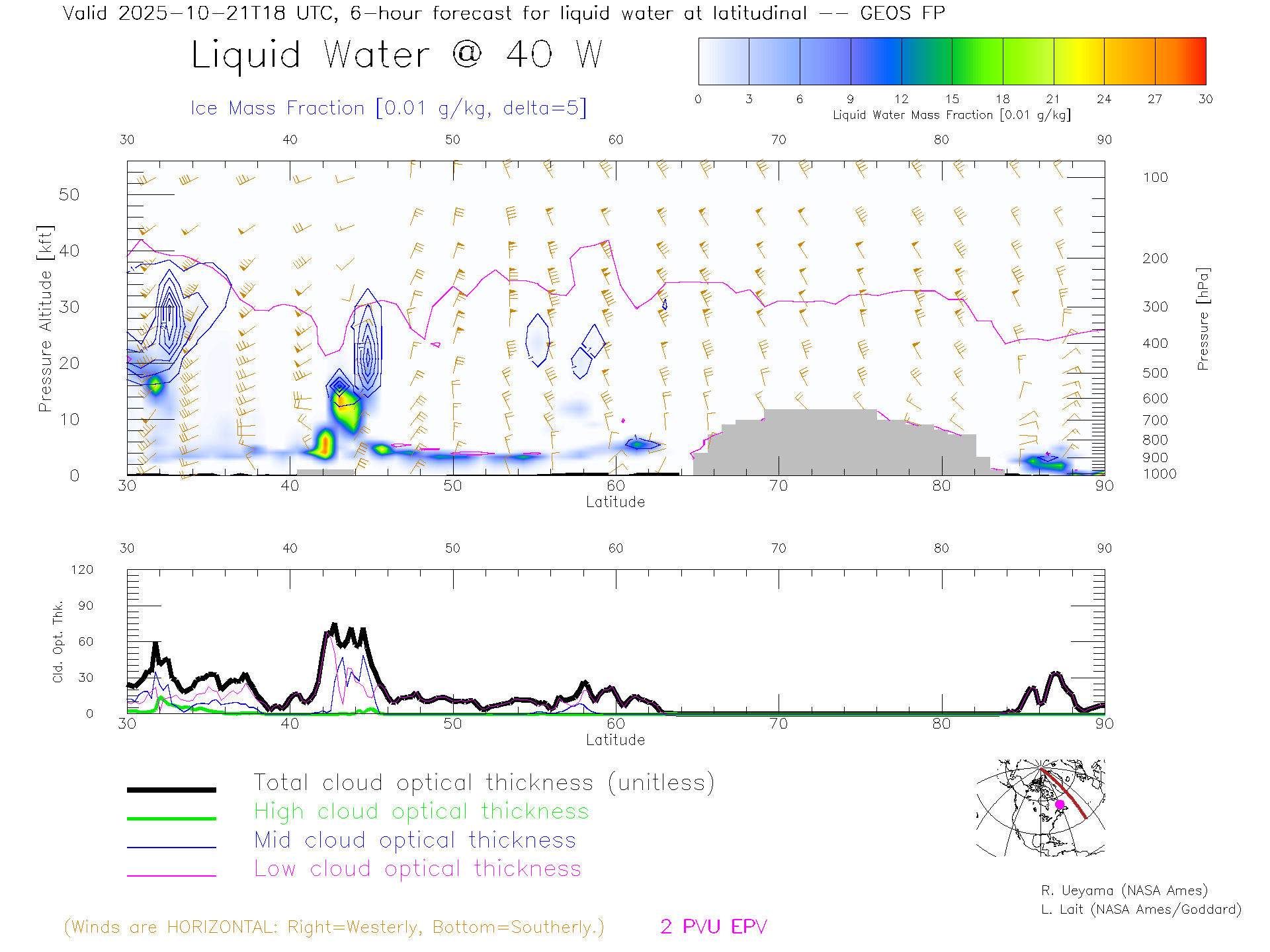 GEOS Forecast Cloud Water Content X-Section (40 W)