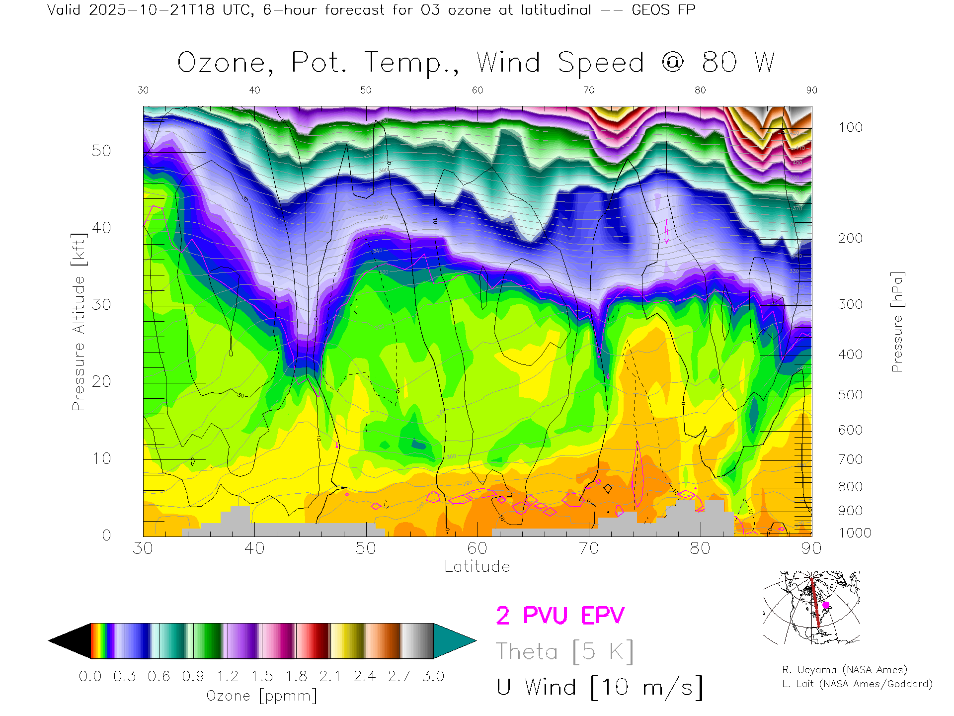 GEOS Forecast Ozone X-Section (80 W)
