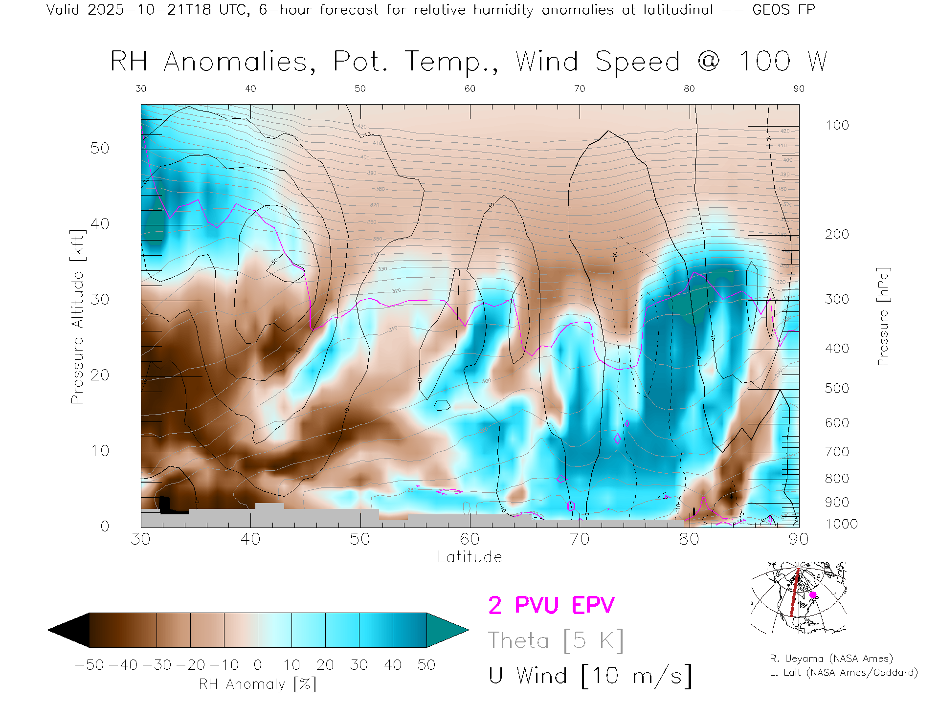 GEOS Forecast Rel. Hum. X-Section (100 W)