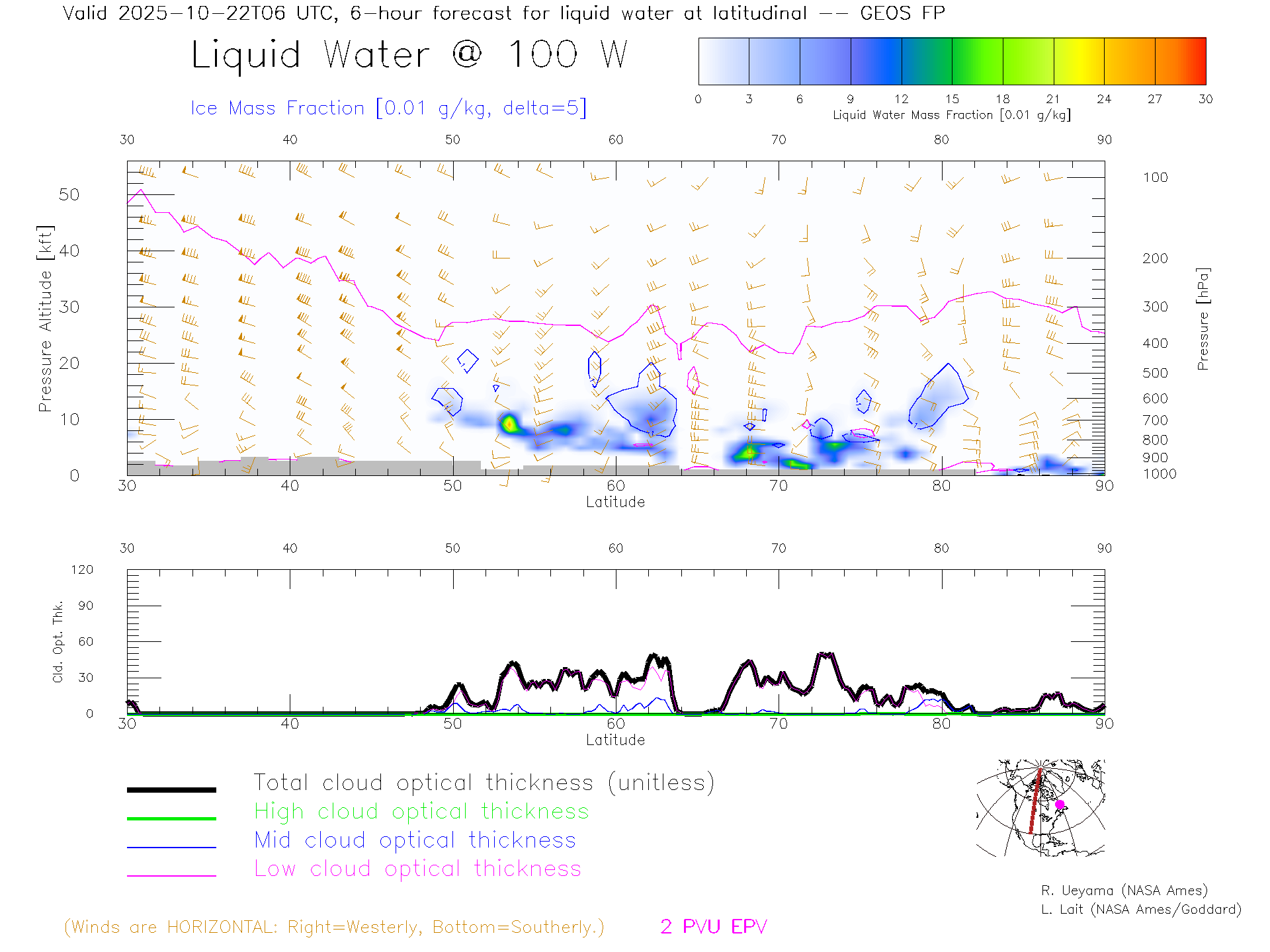 GEOS Forecast Cloud Water Content X-Section (100 W)