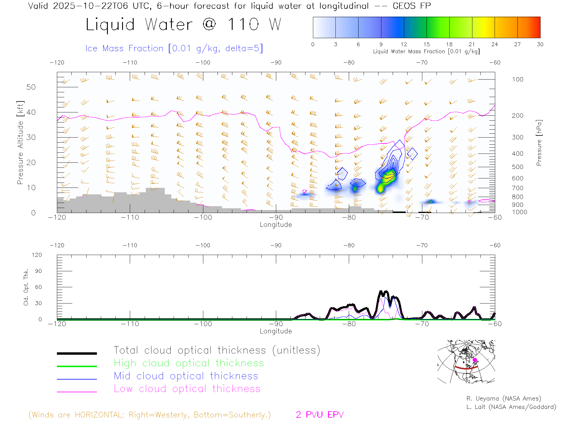 GEOS Forecast Cloud Water Content X-Section (40 N)
