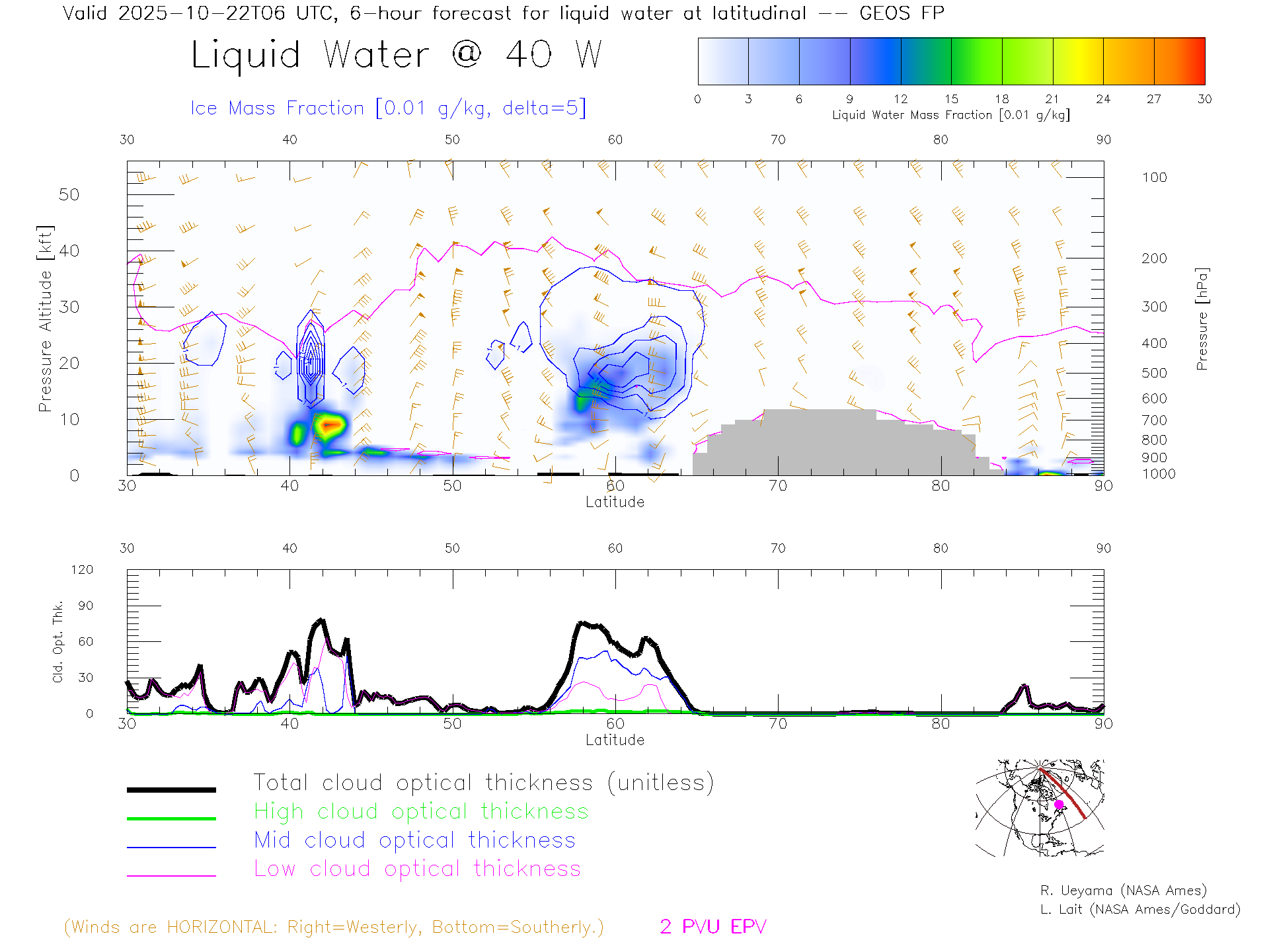 GEOS Forecast Cloud Water Content X-Section (40 W)