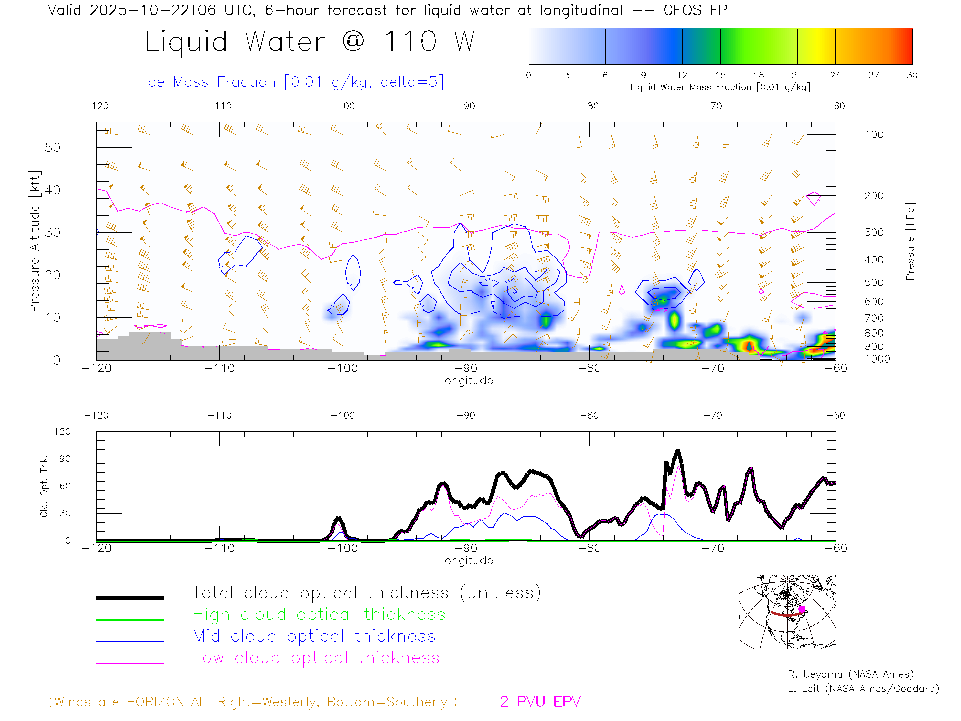 GEOS Forecast Cloud Water Content X-Section (50 N)