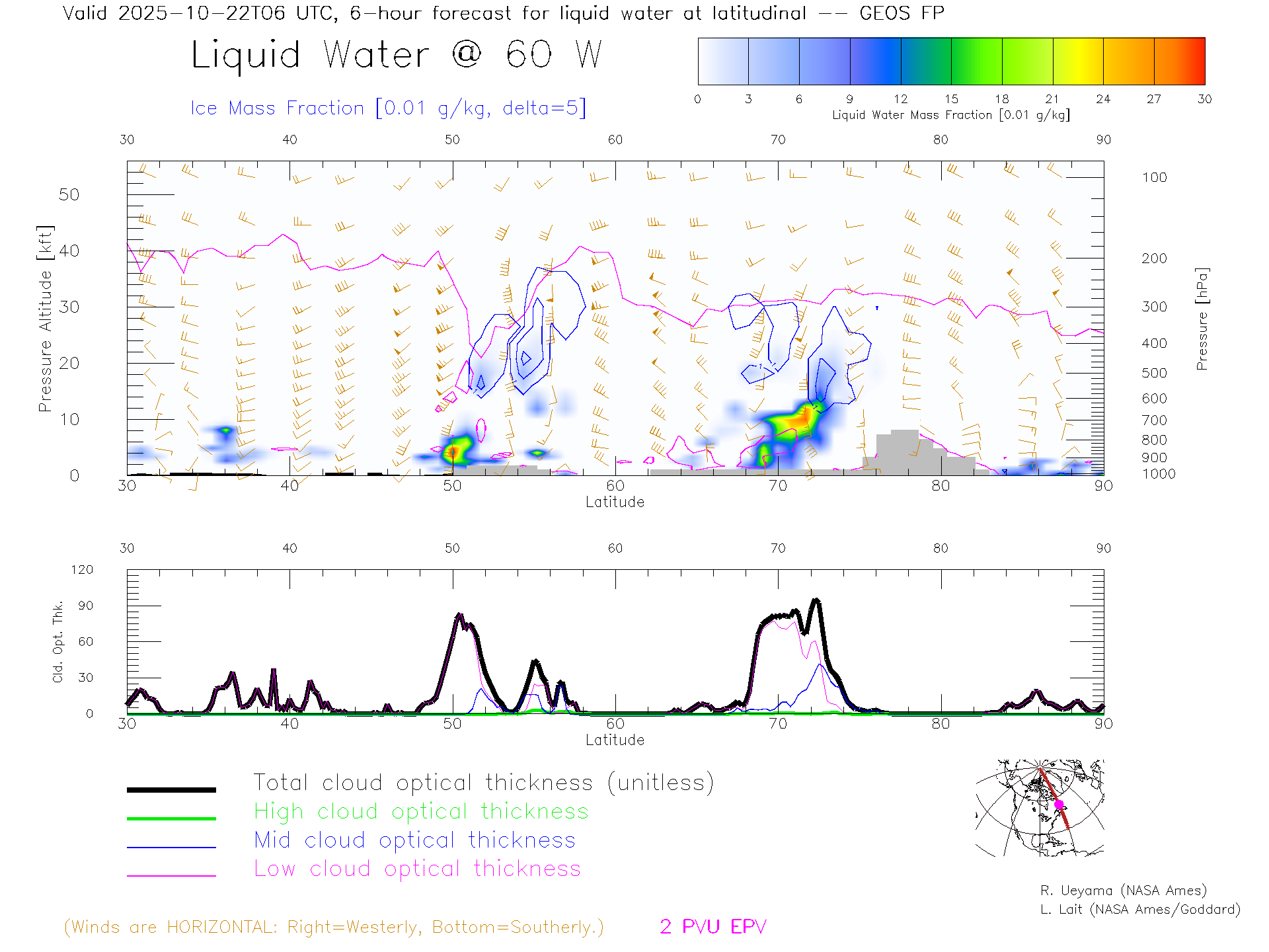 GEOS Forecast Cloud Water Content X-Section (60 W)