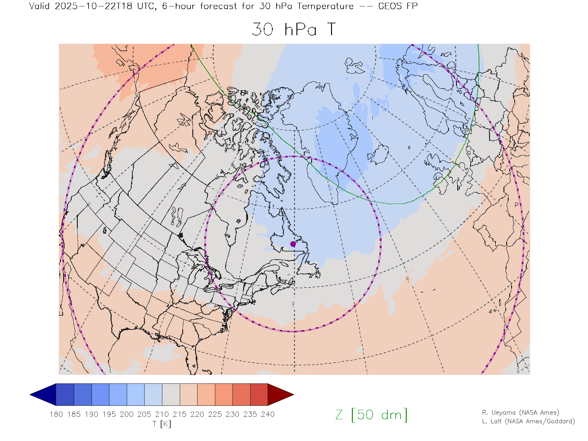 GEOS Forecast 30 hPa Temp.