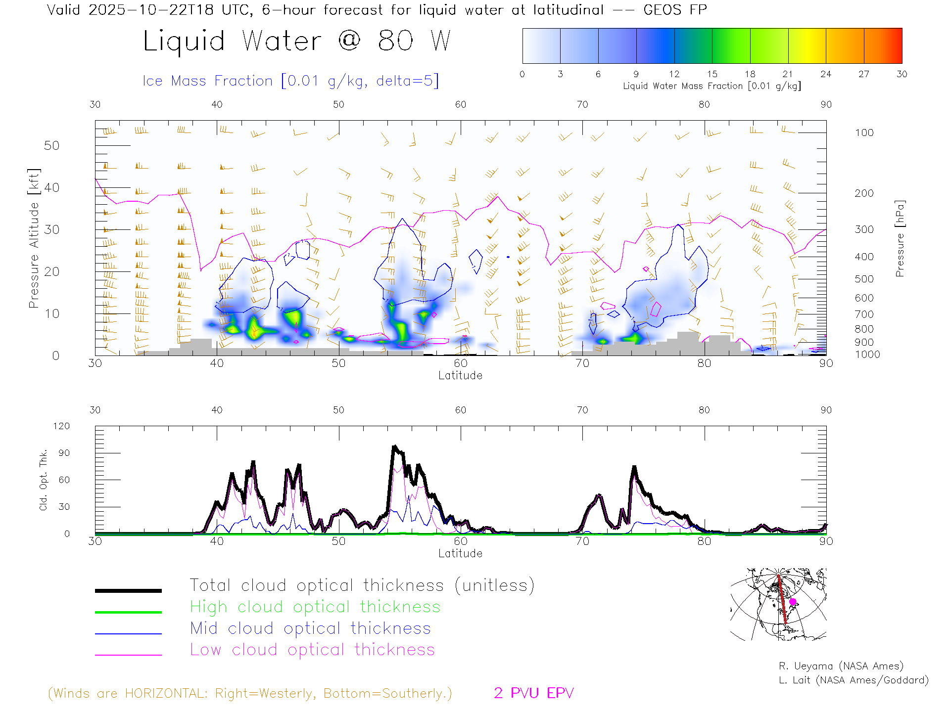 GEOS Forecast Cloud Water Content X-Section (80 W)