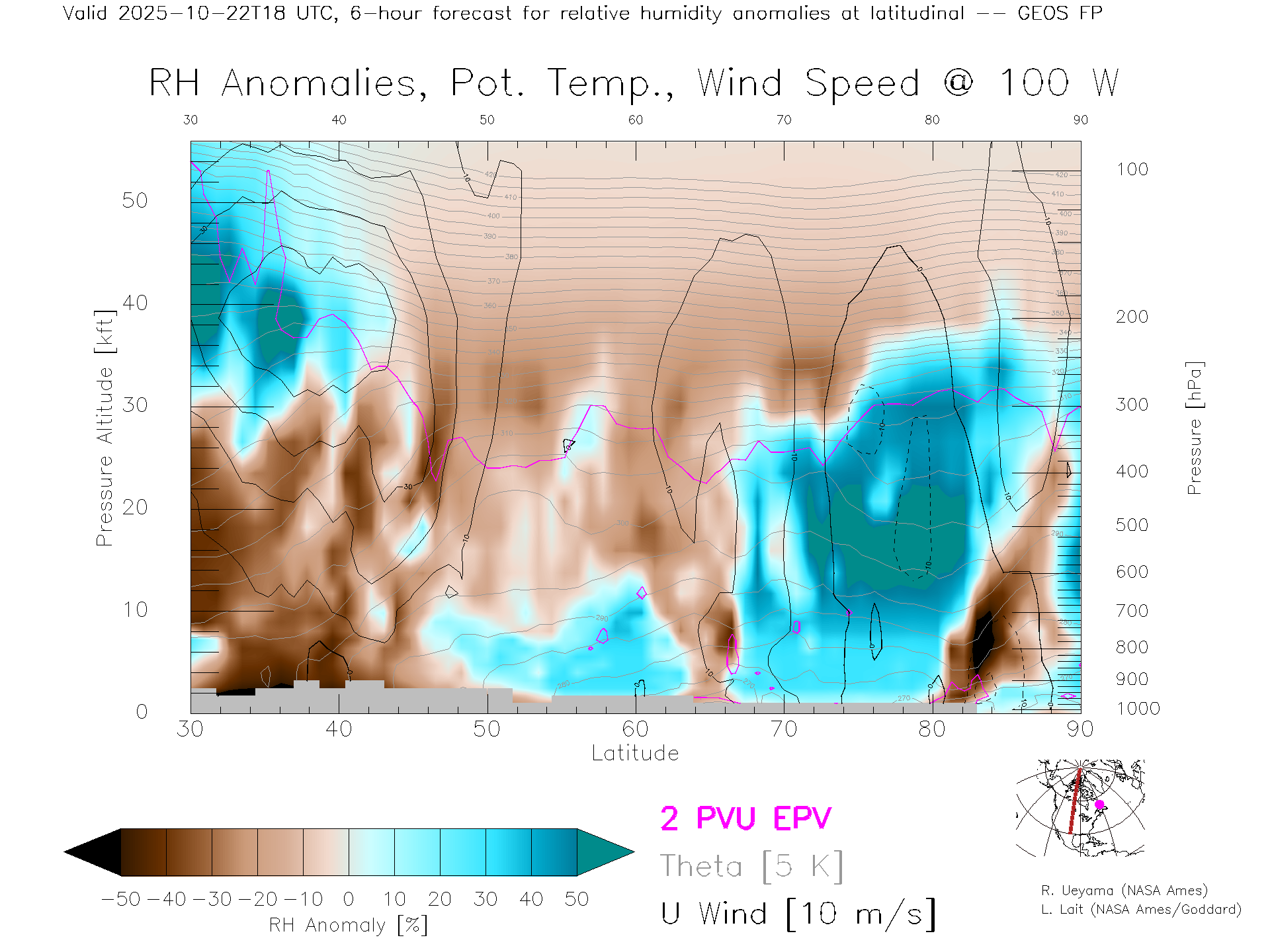GEOS Forecast Rel. Hum. X-Section (100 W)