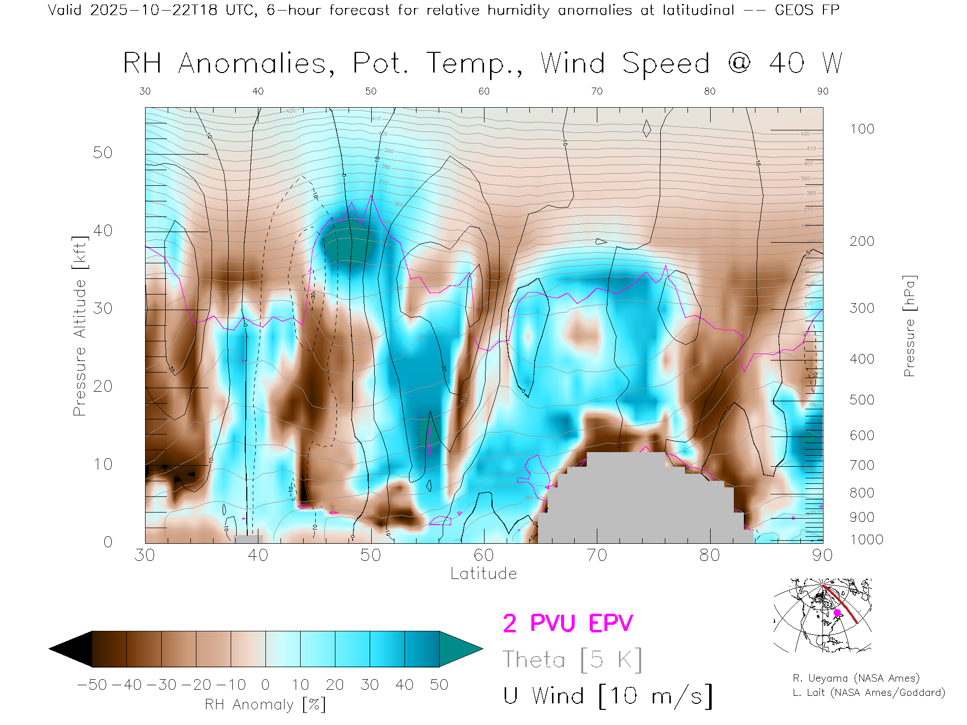 GEOS Forecast Rel. Hum. X-Section (40 W)