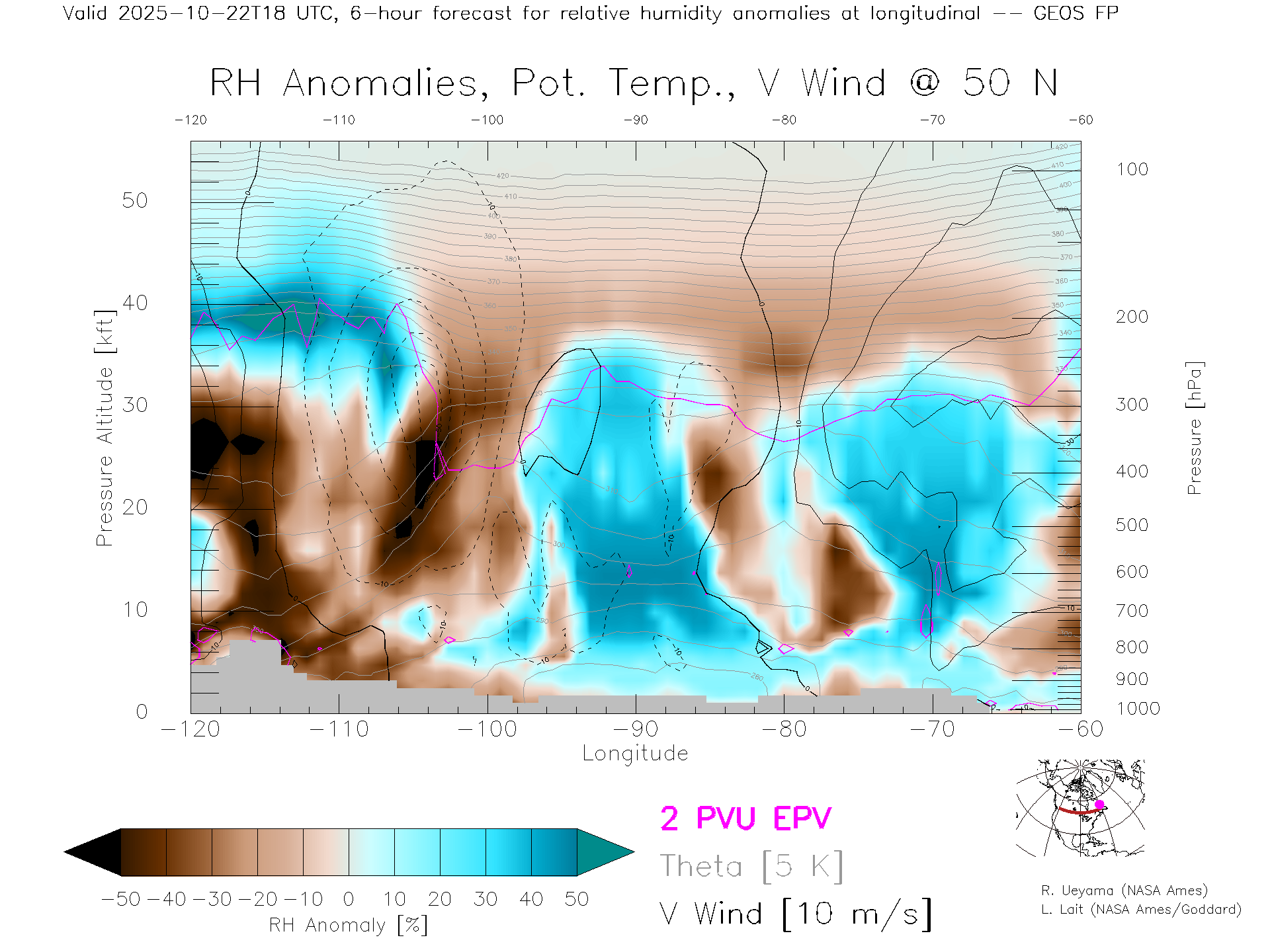 GEOS Forecast Rel. Hum. X-Section (50 N)