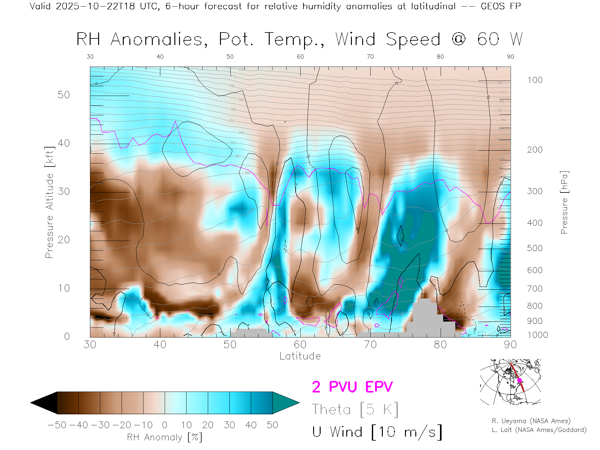 GEOS Forecast Rel. Hum. X-Section (60 W)